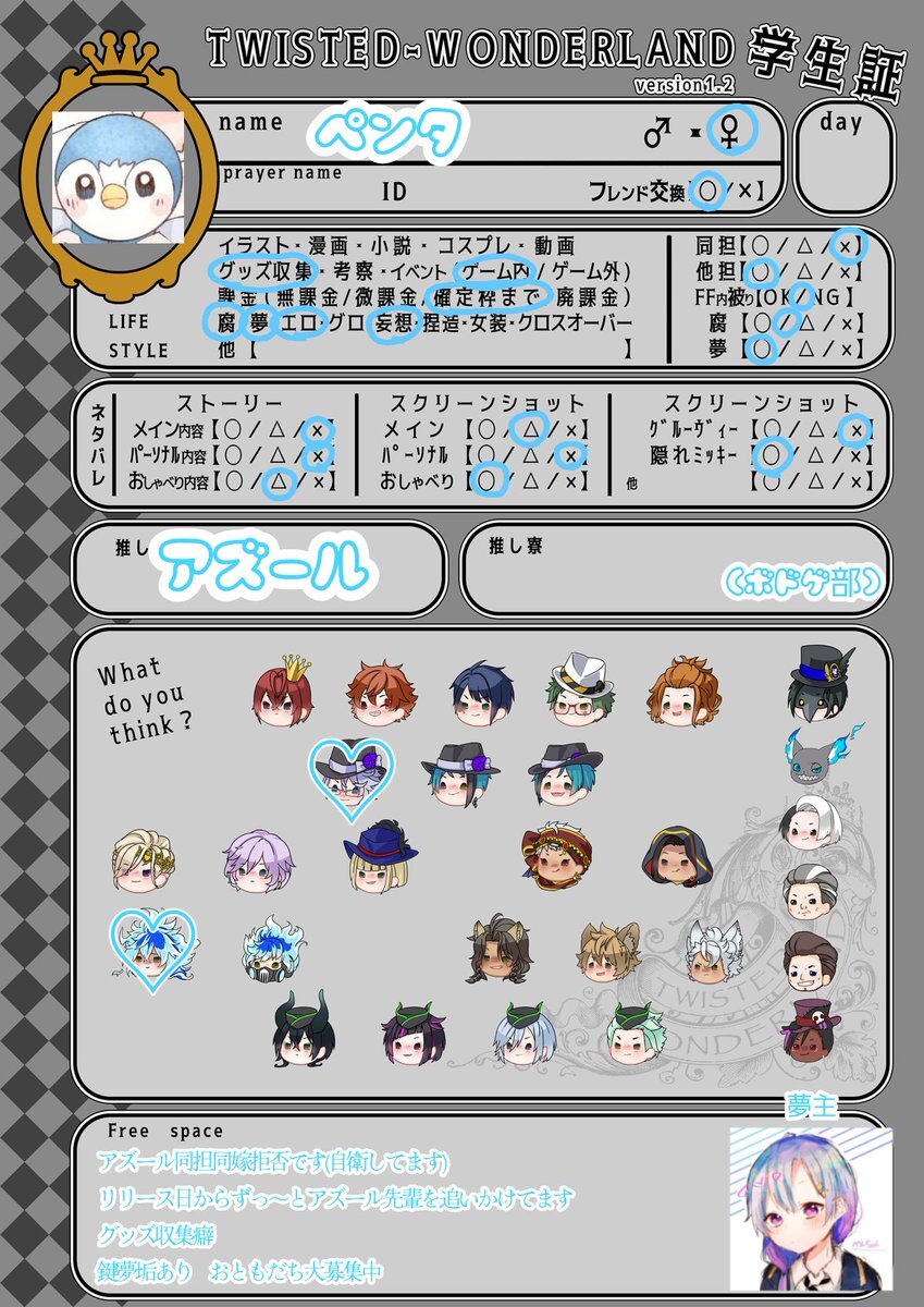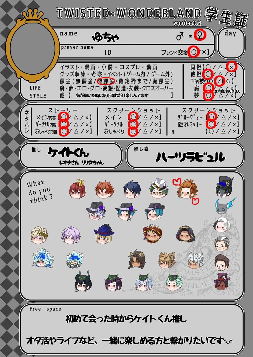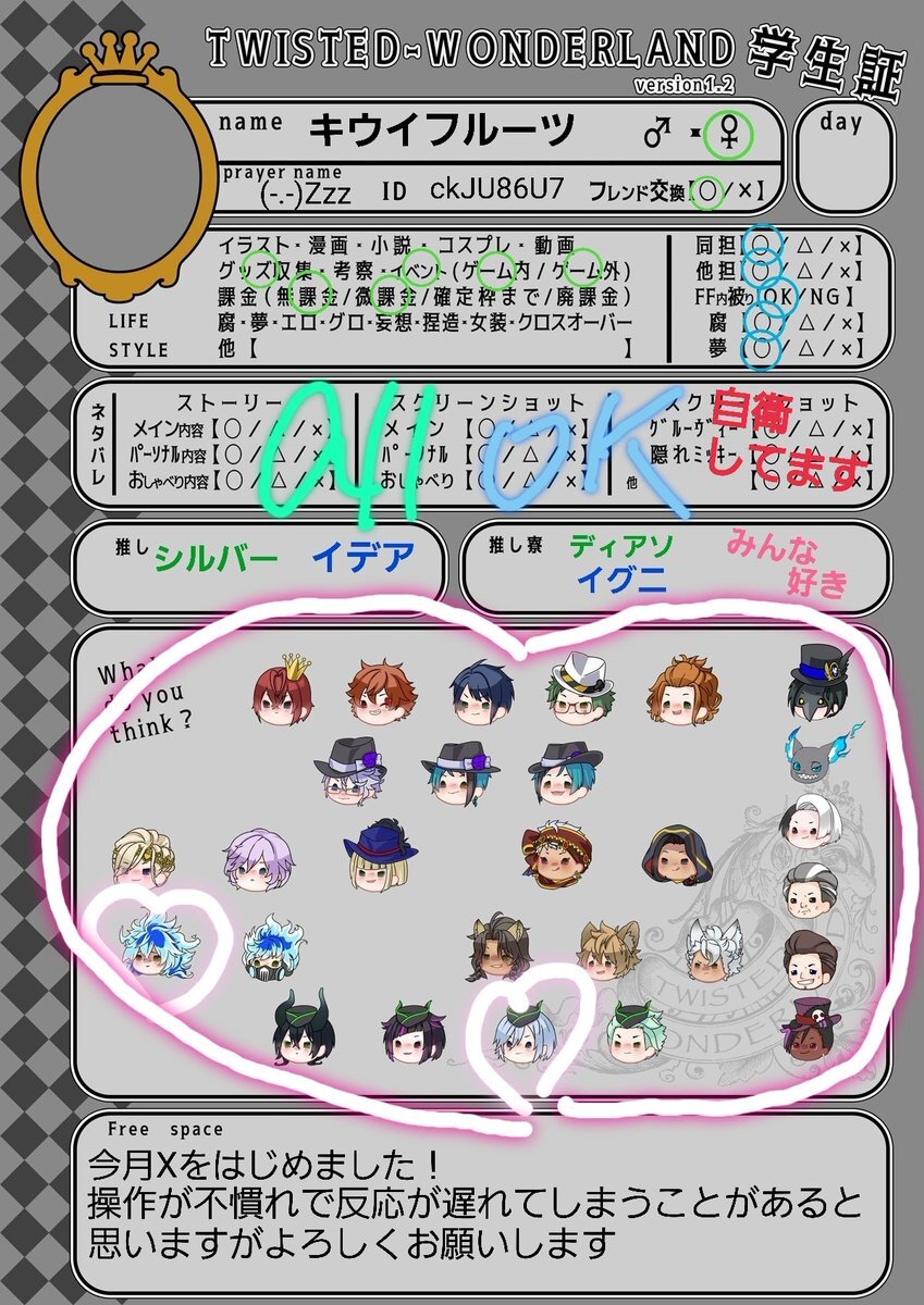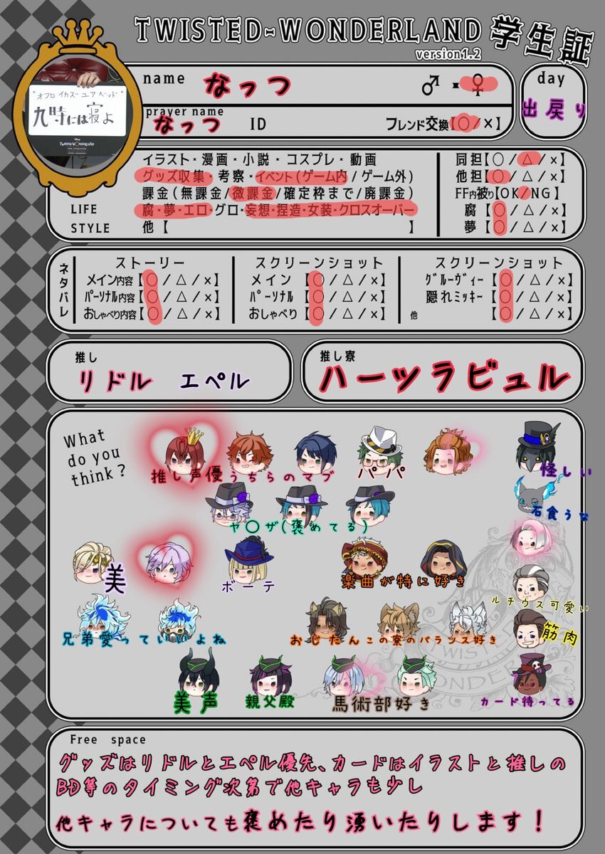 色々気になるキャラが多くて大変助かってます!!!🫶🫶🫶🫶 推し語りできる方や布教してくれる方募集です!!反応巡回します!✨️✨️ #ツイステ学生証 #twst好きさんと繋がりたい #twst好きな人と繋がりたい