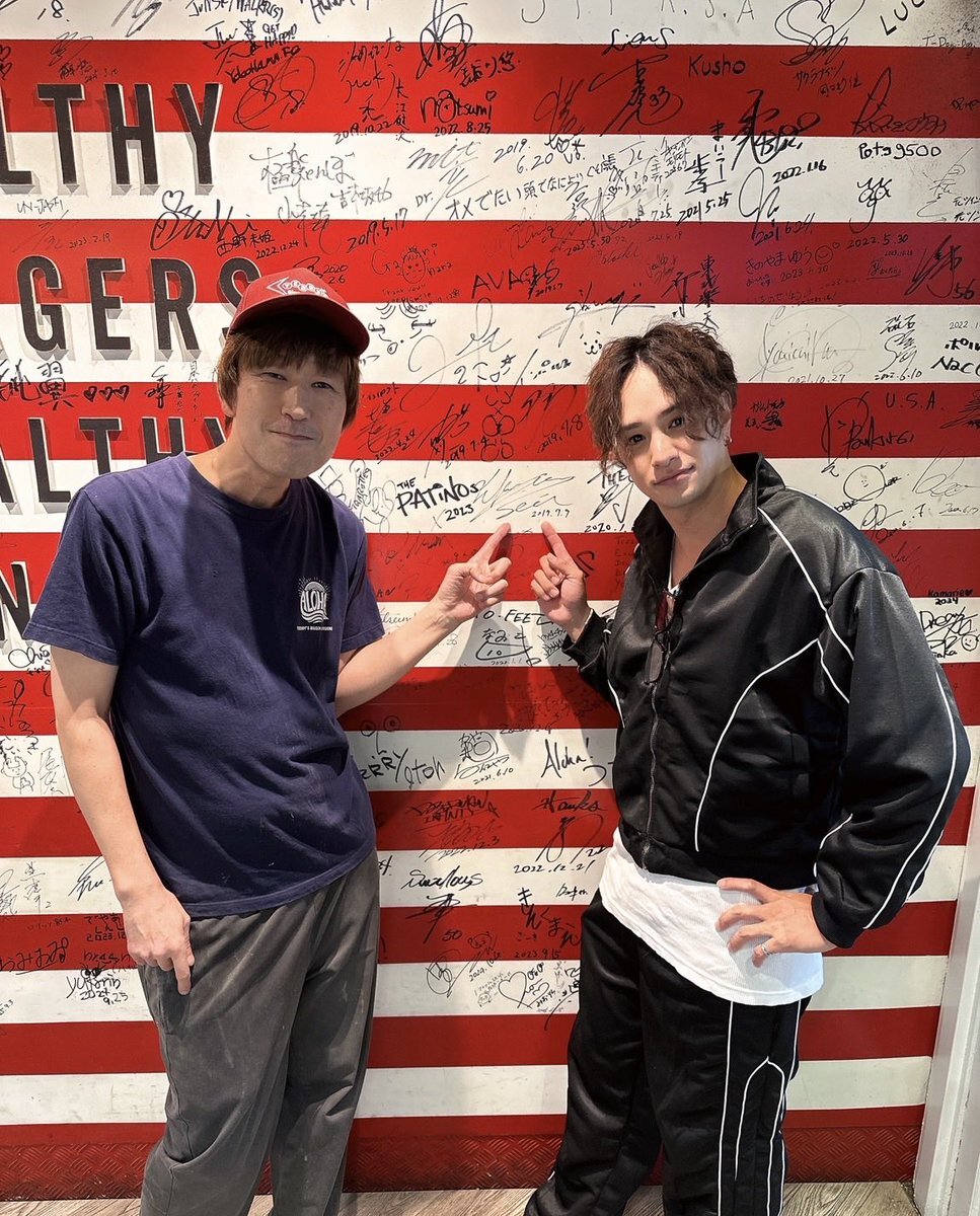 昨日は #LUNASEA Jサンのイベント終わりお立ち寄りくだすった、僕と同じく町田が地元の勇治郎クン🎸 8月に #天皇杯 準々決勝の野津田で遭遇して以来…最初はベースの話もしてたんですケド、気づいたらサッカーの話ばっかしてました⚽️ おそまつさまでした🍔🍟 #テディーズビガーバーガー原宿表参道店 x.com/yujiro_bass/st…