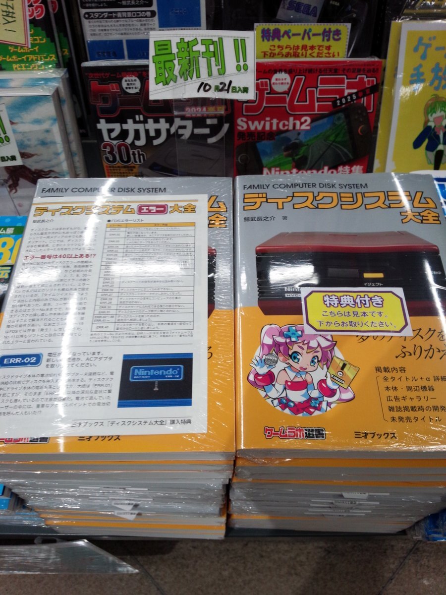 10/21 新刊『#ディスクシステム大全#三才ブックス(9784866734767) #鯨武長之介 著「#レトロゲーム」棚にて!ディスクシステムの全ソフトについて、攻略法や裏技などにも触れつつ詳しく紹介。ディスクシステム用の周辺機器や当時の広告類、残念ながらリリースされなかった未発売ソフトも解説。 pic.x.com/LFAPmkoB5M