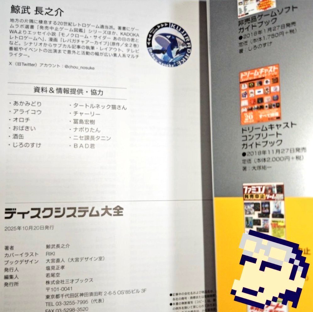 📖 ディスクシステム大全 ☆彡 近くの書店では置いてる部数が 少ないのでネット予約しました。 📕#ディスクシステム大全 (#ゲームラボ選書) ⭕三才ブックス ⭕2025年10月23日発売 ⭕240ページ ⭕ディスクシステムの全ソフトについて、攻略法や裏技などにも触れつつ詳しく紹介。 #鯨武長之介 pic.x.com/bviqnSs2Vy