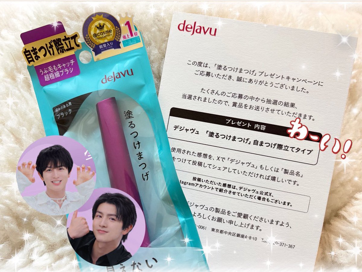 @dejavu_campaignデジャヴュ様から素敵なプレゼントありがとうございます 💕 「塗るつけまつげ」自まつげ際立てタイプ 元々愛用しており 下まつげに良くて実際に使っています 🎀 また柏木悠くんの起用ありがとうございました ! #デジャヴュ #柏木悠 pic.x.com/2j3Rz49CDa