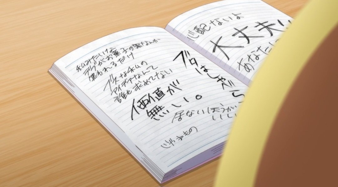夢子さんのアイデアノートを見る玉井さんの表情が、、、 #デブとラブと過ちと!  #デブラブ