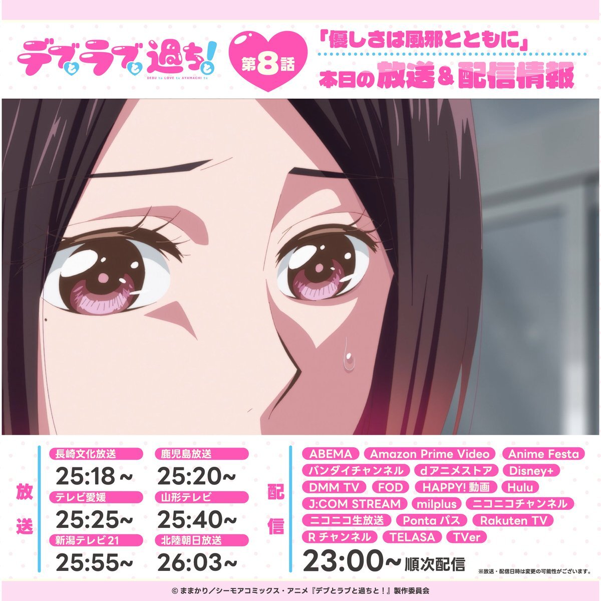/⋰ #アニメデブラブ 💛本日の放送&配信情報💛 \⋱ 第8話「優しさは風邪とともに」 🩷長崎文化放送 25:18~ 🩵鹿児島放送 25:20~ 🩷テレビ愛媛 25:25~ 🩵山形テレビ 25:40~ 🩷新潟テレビ21 25:55~ 🩵北陸朝日放送 26:03~ 各種配信サービスも配信開始!