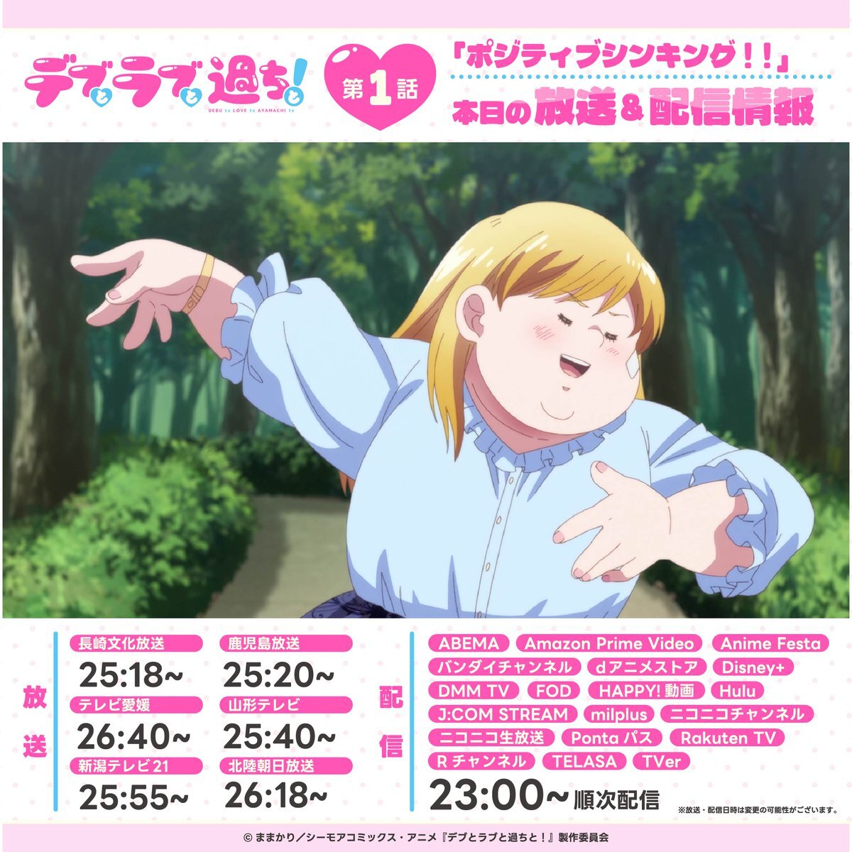 /⋰ #アニメデブラブ 💛本日の放送&配信情報💛 \⋱ 第1話「ポジティブシンキング!!」 🩷長崎文化放送 25:18~ 🩵鹿児島放送  25:20~ 🩷テレビ愛媛 26:40~ 🩵山形テレビ  25:40~ 🩷新潟テレビ21 25:55~ 🩵北陸朝日放送  26:18~ 各種配信サービスも配信開始!