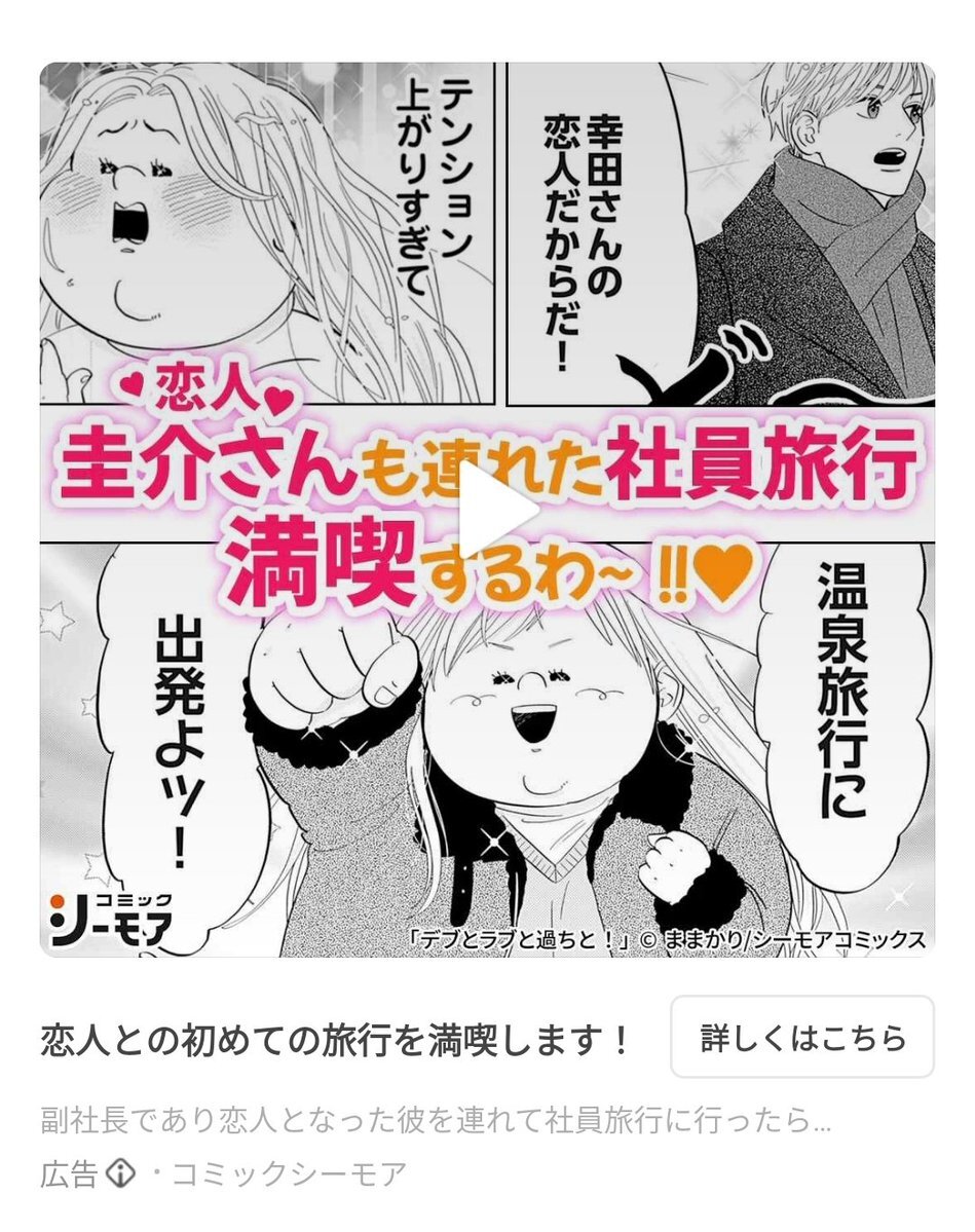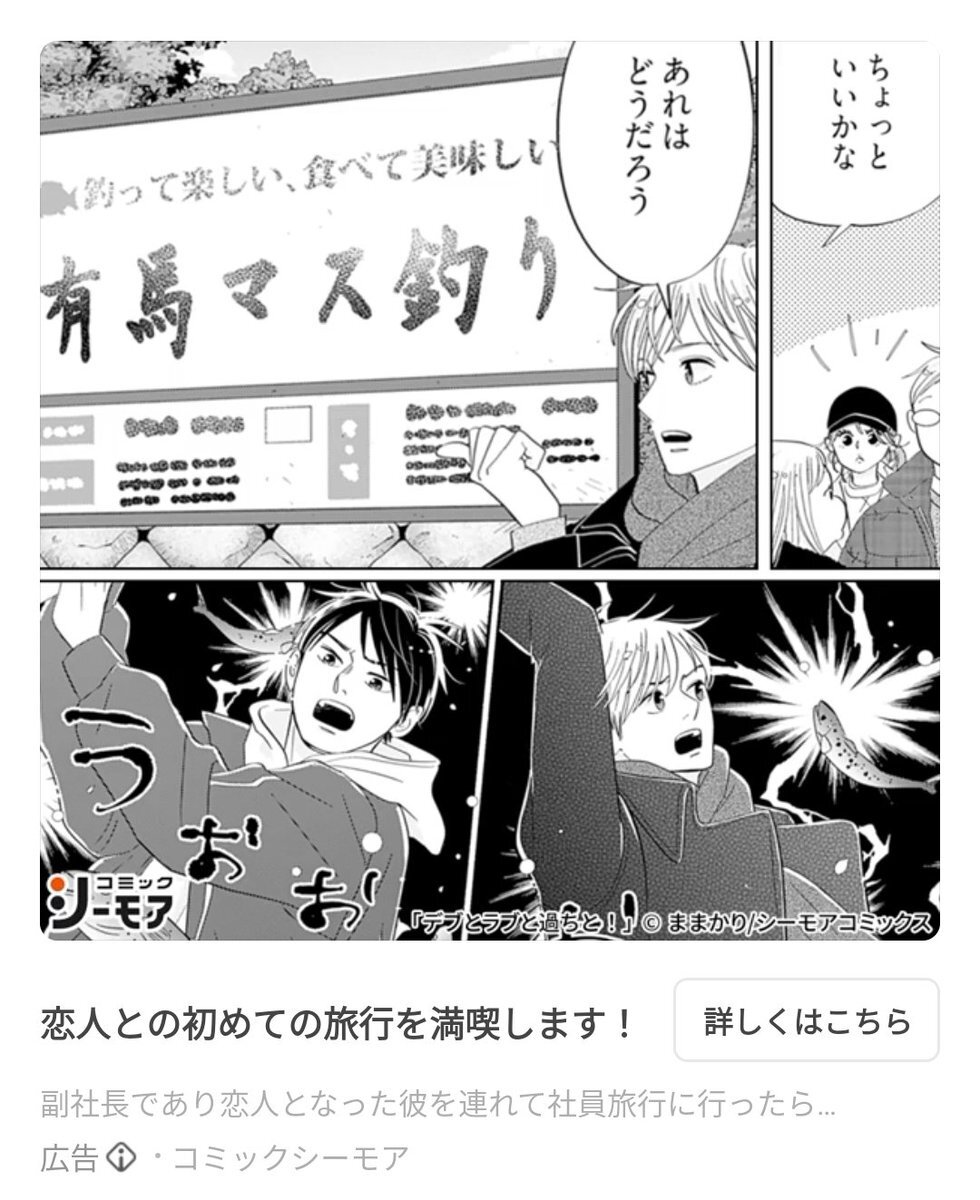 返信先:@mamakaridayoままかりさん,こんにちは。 LINEの広告に #デブラブ の最新話が載って(流れて?)いるのを見つけました! 紙の単行本派なんですが,待ち切れなくて毎月試し読みの部分だけストーリーを追っているので(しかも何年も),見れてとても嬉しいです♪ #デブとラブと過ちと! pic.x.com/JezebSEbcp