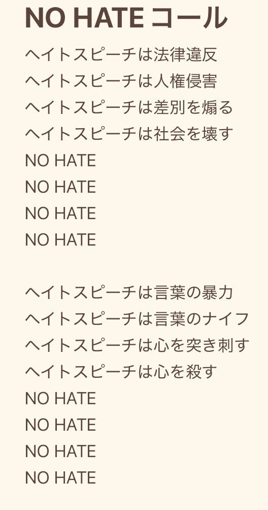 今日、試しにNO HATEコールをやってみた。 スネア1台のやや地味なドラム&コールだったけど、結構イケたと思う。各地の反差別街宣でもよかったらぜひ! 短いコールなので、スピーチの間に2クールずつ挟むくらいでよいかと。 (こぼれ話&オマケに続く) x.com/oshirase_co/st…