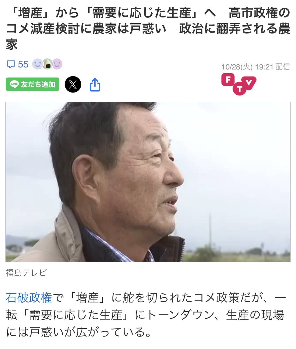 シンプルに疑問なんだけど なんで自民党は国内には-5%の米の減産を打ち出して、逆にアメリカからは75%増しで米を買うの? アメリカへの忖度以外に何か理由あったら教えて? 完全に日本の農業潰しにかかってるよね。