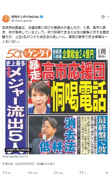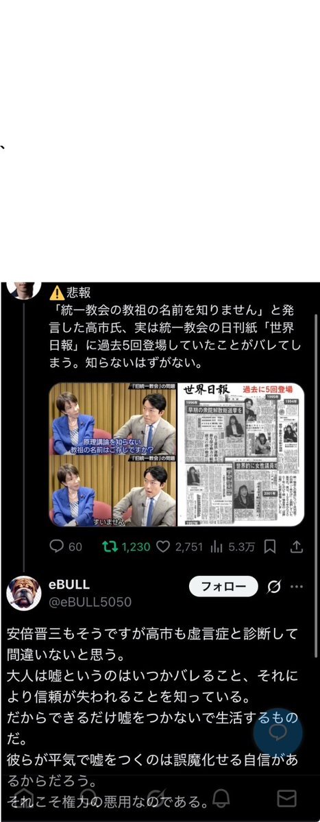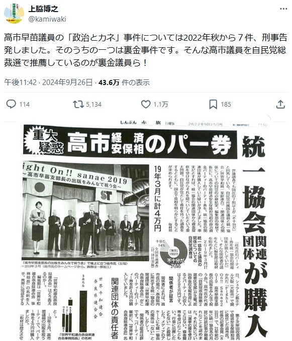 返信先:@sxzBST#デマウヨ「【朗報】高市早苗総裁効果で自民党員入党爆増須田慎一郎『高市事務所経由で7000人入党希望者が爆増してます』これが民意。マスコミや反高市議員は高市おろしなんてやめた方がいい国民が許さない」←統一教会信者が,だろ。須田はデマ屋だし x.com/batayanF3/stat… x.com/tacowasa2nd/st… pic.x.com/8zucW3U2dK