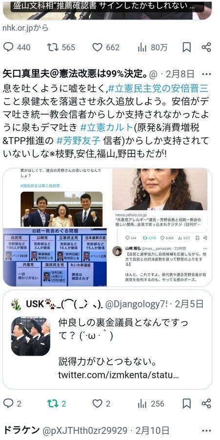 返信先:@Oputimasu1224#デマウヨ「小野田議員『NHKを何とかしようと動いてる議員はとても少数,NHKに味方する議員が多い。指摘し続け勢力を増やしてくしかない』」☜自分らの悪事を報じられた腹いせか。悪法の推進も目的は言論弾圧で確定だな!#嘘つきは統一教会の始まり x.com/tanzaniapea/st… x.com/PistonMach/sta… pic.x.com/EOfCDgMWTI