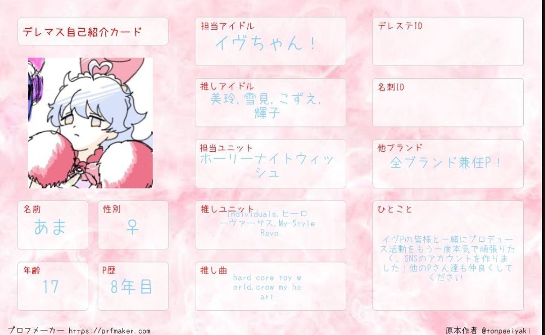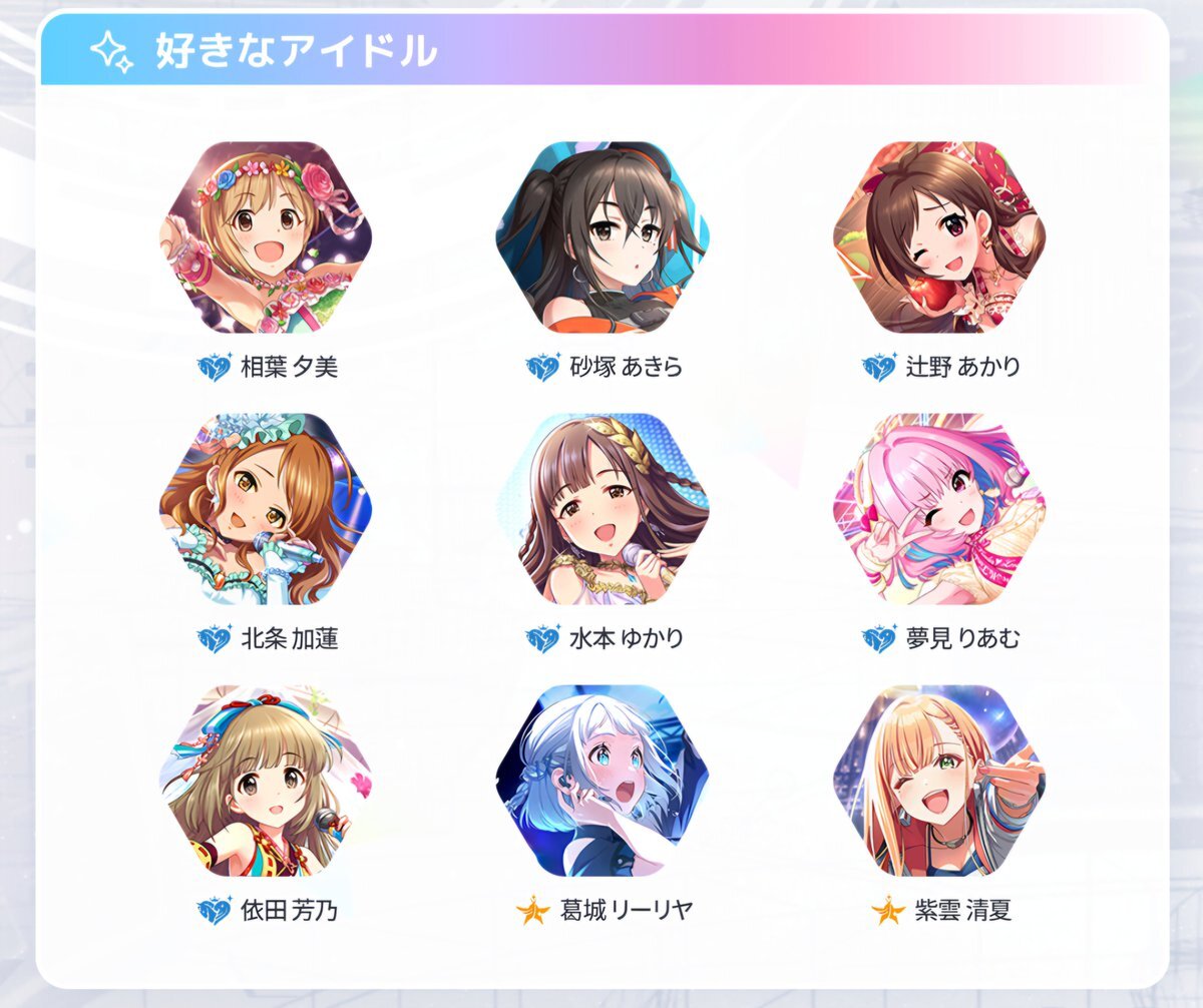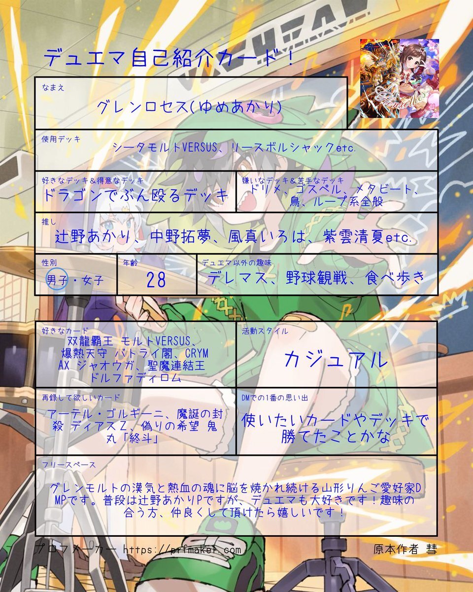 辻野あかりを中心に画像2枚目のアイドル達を推しています、モルトバーン改め、グレンロセスです 趣味の合う方、仲良くしてくれると嬉しいです! #デレステ名刺 #デレステPさんと繋がりたい #学マス好きな人と繋がりたい #デュエマ好きと繋がりたい #デュエマ自己紹介カード pic.x.com/8nrVAoV7GG