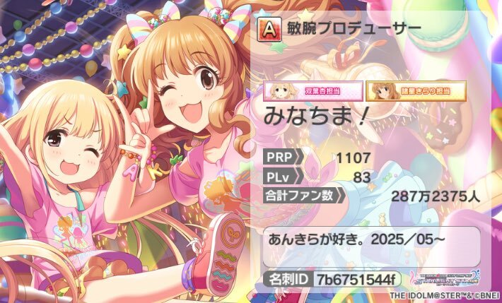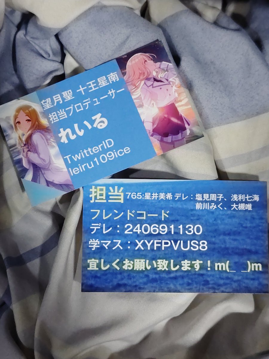 11月の固定です🏷️ フォローは気になった方のみ。 ぼっちで遊んでるので ラウンジやサークル等も緩く募集。 よろしくお願いします。 #デレステ名刺 #ミリシタ名刺 #学マス名刺 #デレステPさんと繋がりたい #ミリシタPさんと繋がりたい #学マスPさんと繋がりたい #いいねしたPさん全員フォローする pic.x.com/AnooAKLnXm