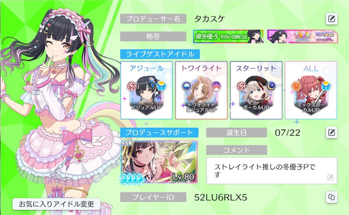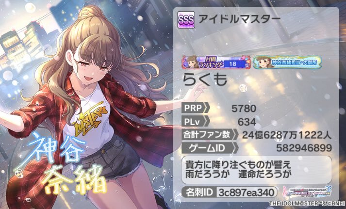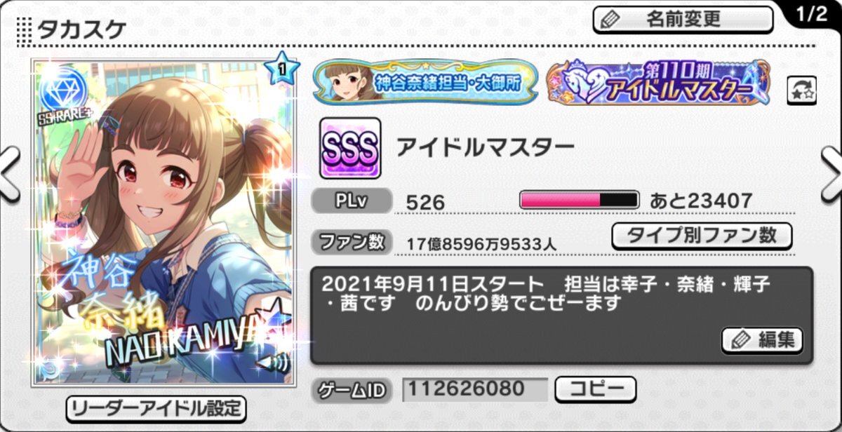 月が変わったので更新٩( 'ω' )و 神谷奈緒、高森藍子、黒埼ちとせの担当をしております、らくもと申します! フォロー、同僚申請大歓迎です! ゲストのNG3人はステ25振り、レゾナンスは30振りにしてます!是非ご活用ください! デレステID:582946899 #デレステPさんと繋がりたい #デレステ名刺 pic.x.com/RfIYTD3fLZ