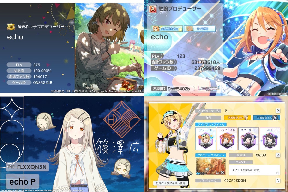アイマスコンテンツが好きな社会人/神奈川住み/P歴10年ちょっとの新人Pです。 1枚目と2枚目が各ブランドの担当で、3枚目と4枚目が好きなアイドルです #ミリシタPと繋がりたい #学マスPと繋がりたい #デレステPさんと繋がりたい #シャニマスPと繋がりたい pic.x.com/tNb19SyB5y