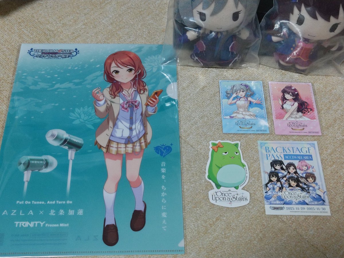 イラストかわいすぎ ライブ行く前までは、展示スペース見たかったのと、友人の担当アイドルのグッズ購入が目的だったけど 昨日のライブでありすとあきらが突然一緒に歌い始めて縁ができたから、あきらのイラストがあるグッズも購入しちまった #デレフェス_ES #デレマス #京まふ pic.x.com/IhKl3K4Ljx