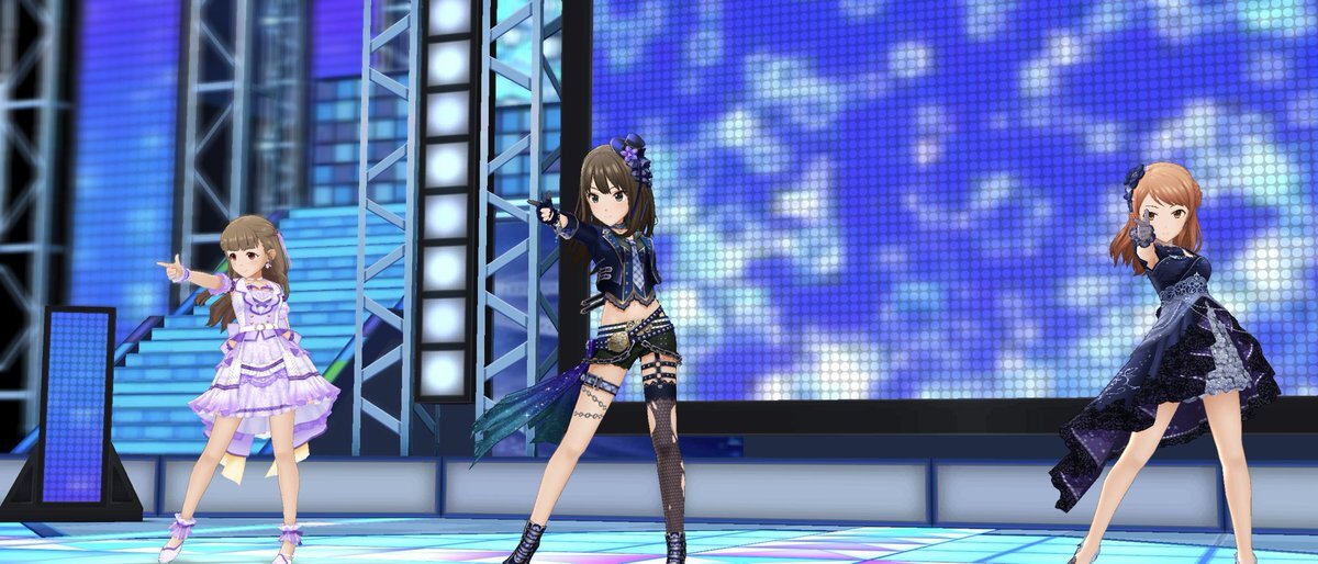 #デレステスクショ夜の1枚 #北川真尋 #柳瀬美由紀 #桐野アヤ #デレマス14周年 というわけで今日は沢山MVを撮影していました。 デレステは大きなイベントが終わってしまったけどこうして自由に楽しむ時間が増えたのはありがたいです pic.x.com/LWNkSKBQEm