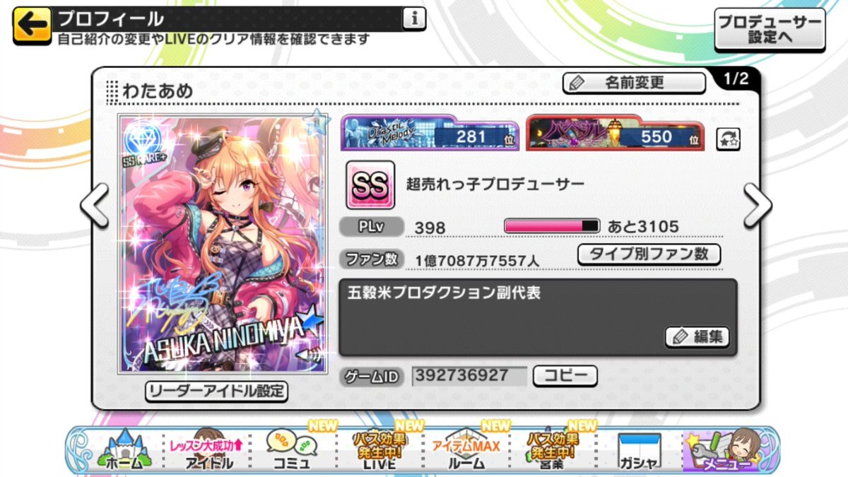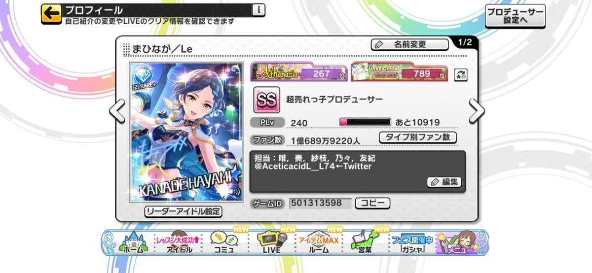 デレステ10thツアー千秋楽を機にフォロワーも増えたので改めて… 周子、飛鳥、小梅ちゃん、光、愛梨ちゃんの担当をしておりますアルカです! よろしくお願いします! ゲームID:254597301 #デレステ名刺 #デレステ #デレステPさんと繋がりたい #デレマスPさんと繋がりたい 下に続く pic.x.com/wVOLomW4AS