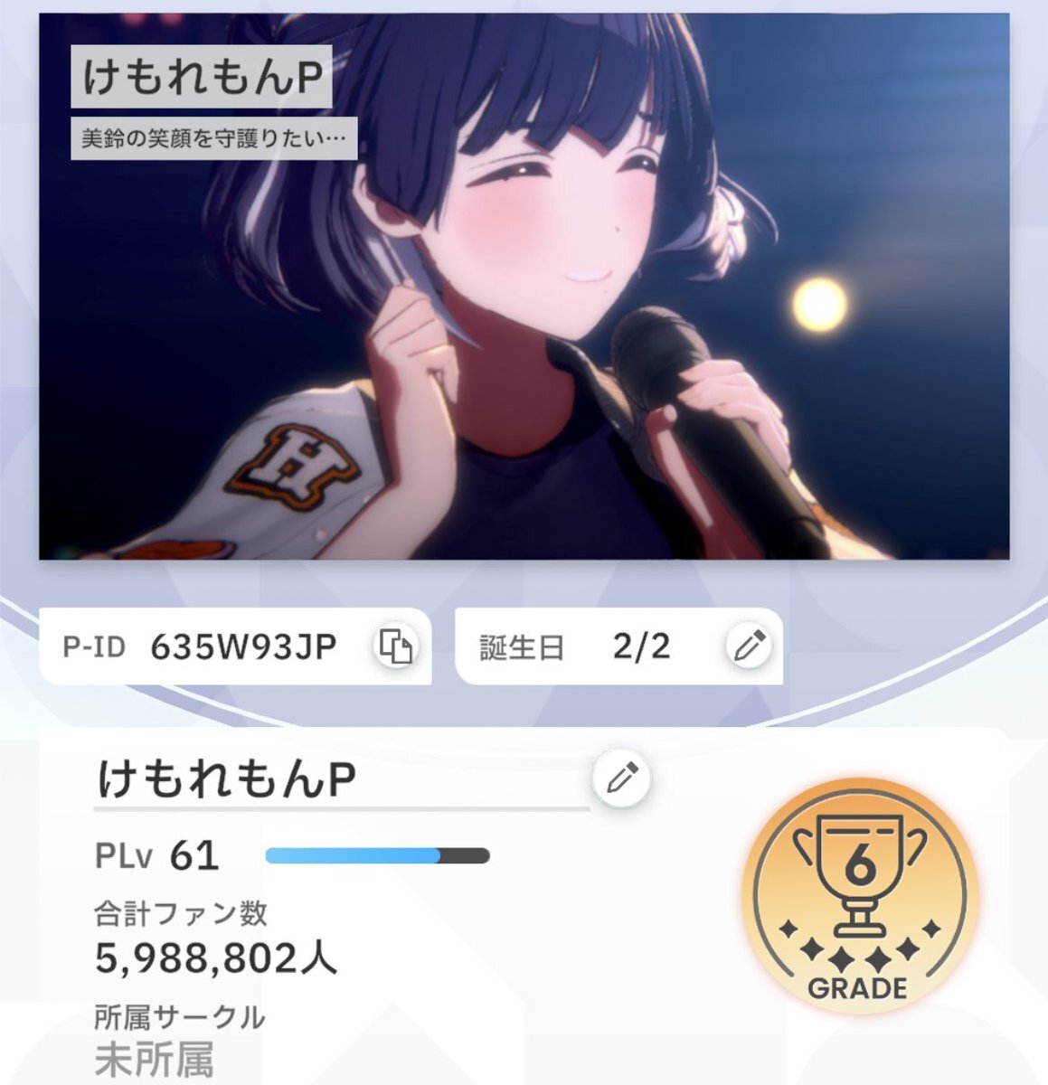 デレマス・ミリオンを久々に活動してます。 担当は表記の通りです デレ10thに向けて更新します 気軽に絡んでくれると嬉しいです #デレマスPさんと繋がりたい #ミリシタPさんと繋がりたい #いいねした人全員フォロー pic.x.com/C4f1CEmv1B