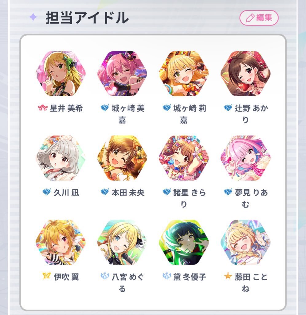 自己紹介など↓↓↓ 名前: 美紅 年齢: 21 生息地: デレ=学>シャニ(稀にAS) 担当: 下画像参照↓ 推し:えりち、めぎゅし、ぴかるん 絵垢:@mi__ku__39 よろしくお願いします(*^^*) #学マスPさんと繋がりたい #シャニマスPさんと繋がりたい #デレマスPさんと繋がりたい pic.x.com/so65boRfxb
