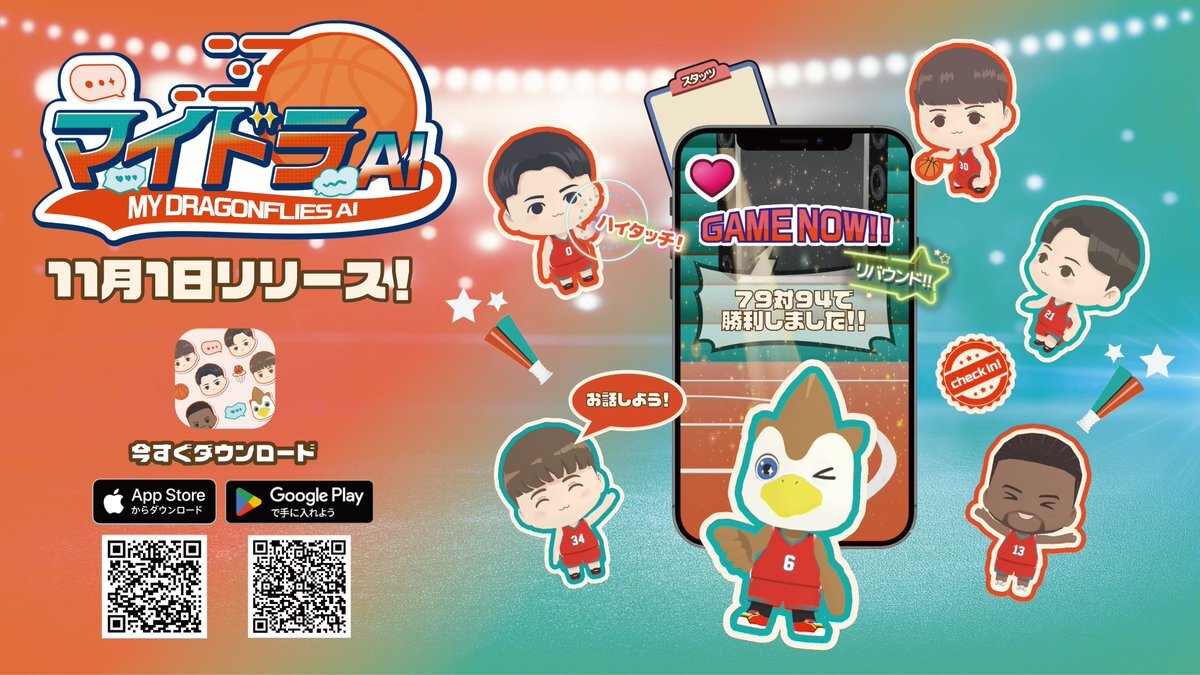 【📣新アプリ「#マイドラAI」リリース!🎉】 #広島ドラゴンフライズ の新しい公式ファンアプリ「マイドラAI」を、本日11月1日よりリリースしました! AI技術を活用し、選手とあなただけの「日常的なコミュニケーション」を楽しめます 。 試合がない日も、選手との会話を楽しんで絆を深めよう!