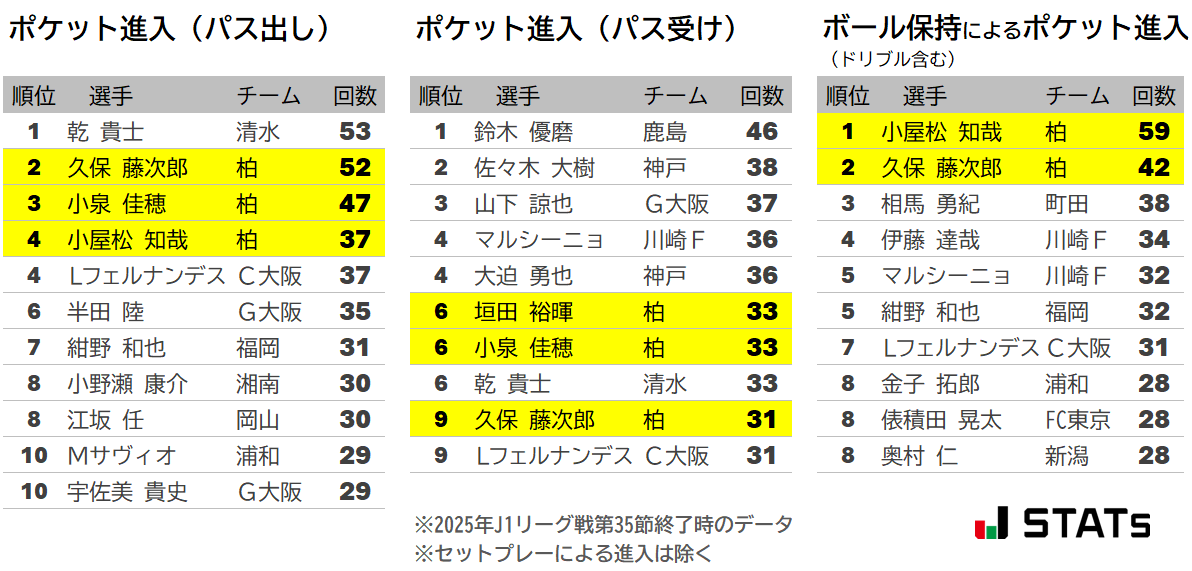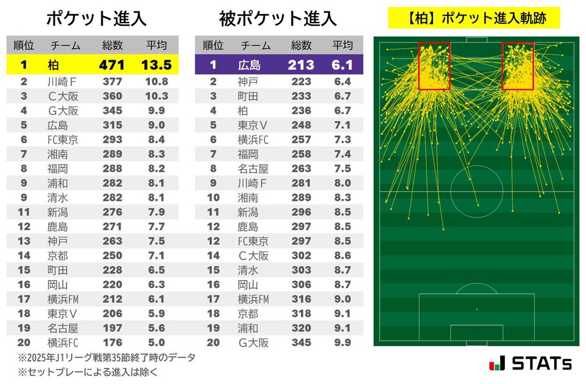 🏆#ルヴァンカップ 決勝はポケットの攻防に注目‼ 📊ポケット進入回数が最多の #柏レイソル と進入された回数が最少の #サンフレッチェ広島 の対決‼ #決勝 #reysol #sanfrecce #データスタジアム pic.x.com/2dcOVjvL74 x.com/J_League/statu…