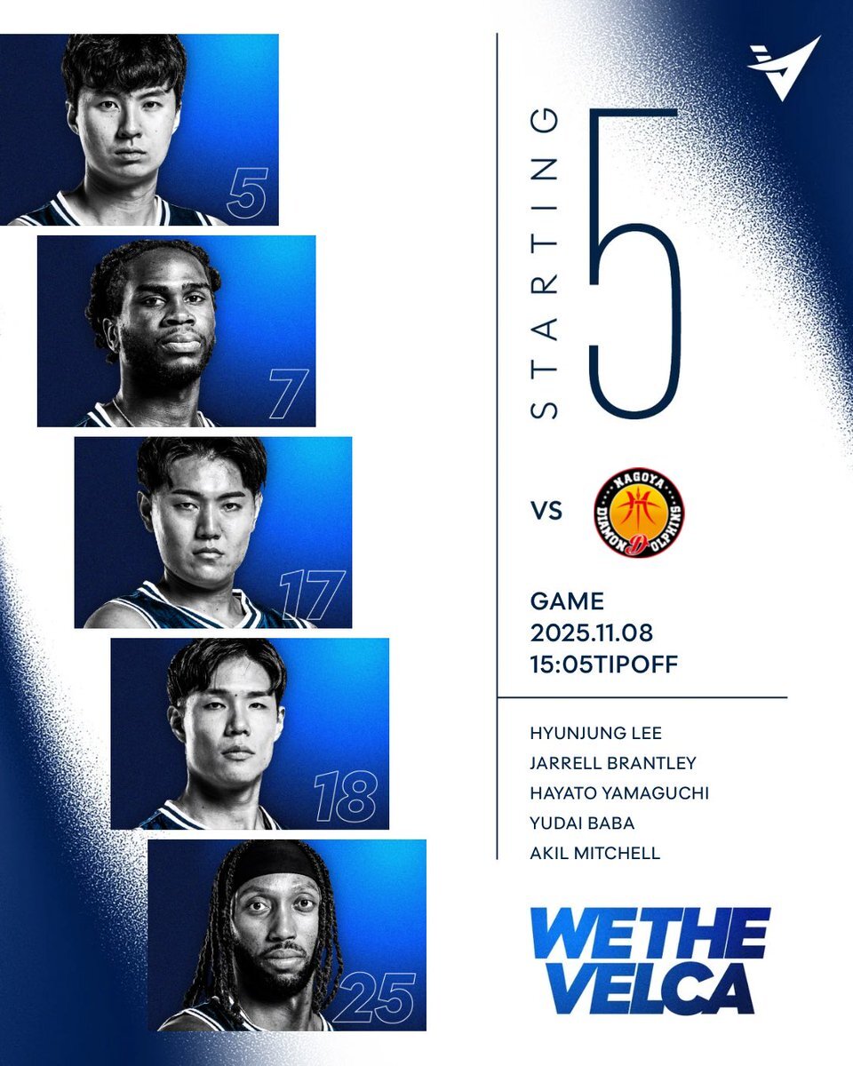 スターティング5 りそなグループBリーグ2025-26 B1リーグ戦 第9節GAME1 🆚#名古屋ダイヤモンドドルフィンズ 🕒15:05TIPOFF 📍ハピネスアリーナ #イヒョンジュン #ジャレルブラントリー #山口颯斗 #馬場雄大 #アキルミッチェル 📡#バスケットLIVE basketball.mb.softbank.jp/lives/504921/?… #velca #長崎ヴェルカ