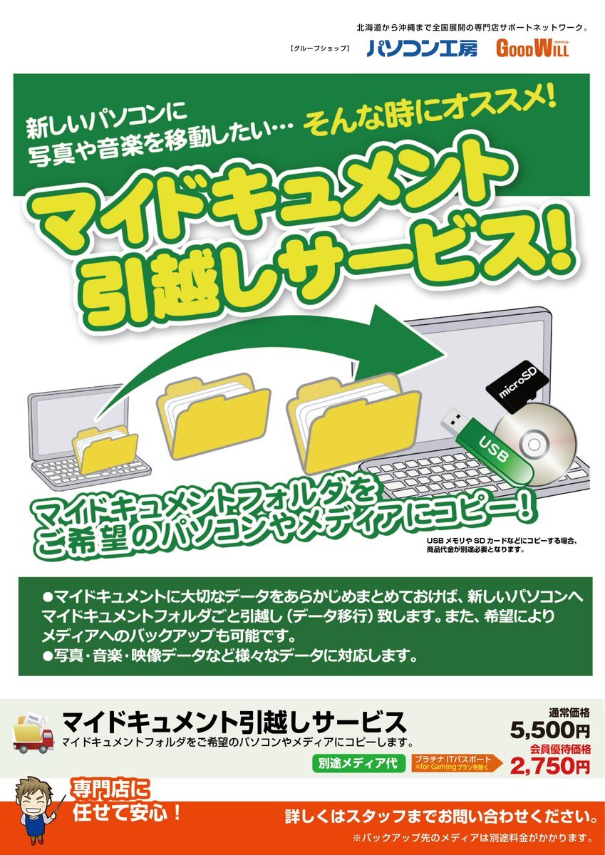 【サポートサービス紹介】 わずらわしい作業は専門店にまるごとお任せ😏 📁マイドキュメント引越しサービス📂 新しいパソコンに写真や音楽を移動したい…そんな時にオススメ! マイドキュメントフォルダをご希望のパソコンやメディアにコピーします! #パソコン工房 #香椎 #サポート #データ移行 pic.x.com/n8JC0SnvYB