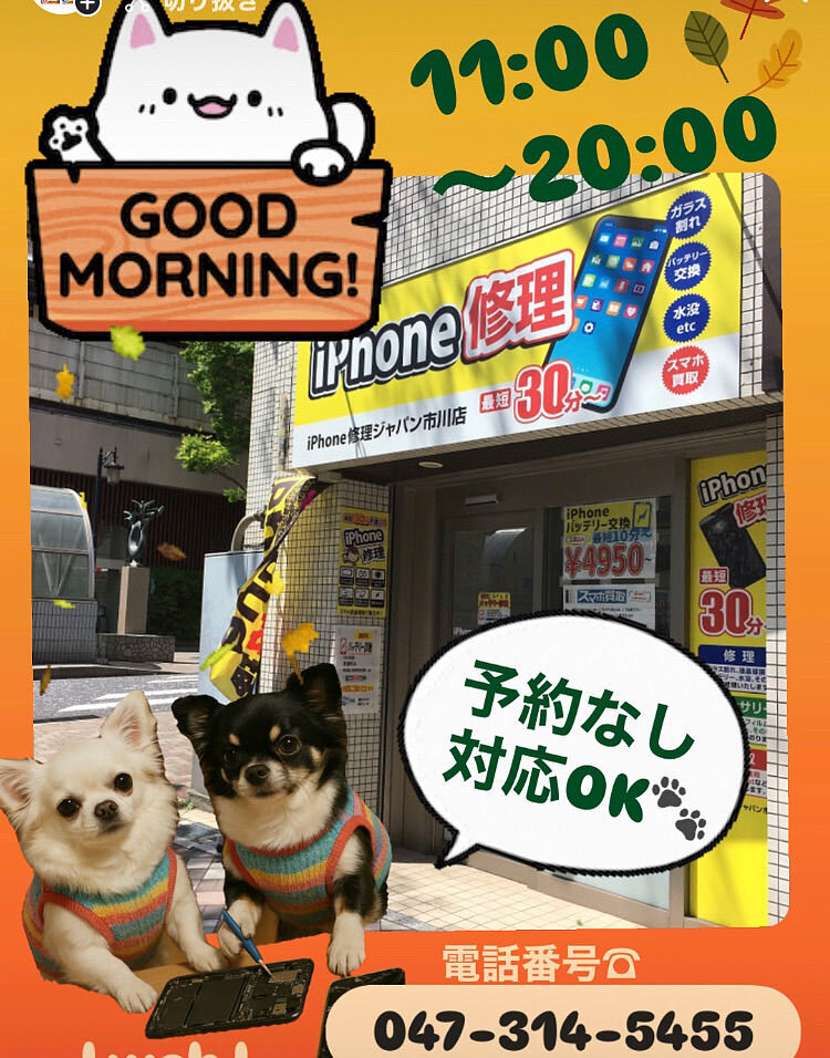 . 10月12日☀ おはようございます! 雨がやんではれてきそうですね👍 #修理#買取 #設定代行#データ移行 📲 本日も20時まで営業しております! . iPhone・iPadの #トラブル#スマホ修理ジャパン市川店 に お任せください!