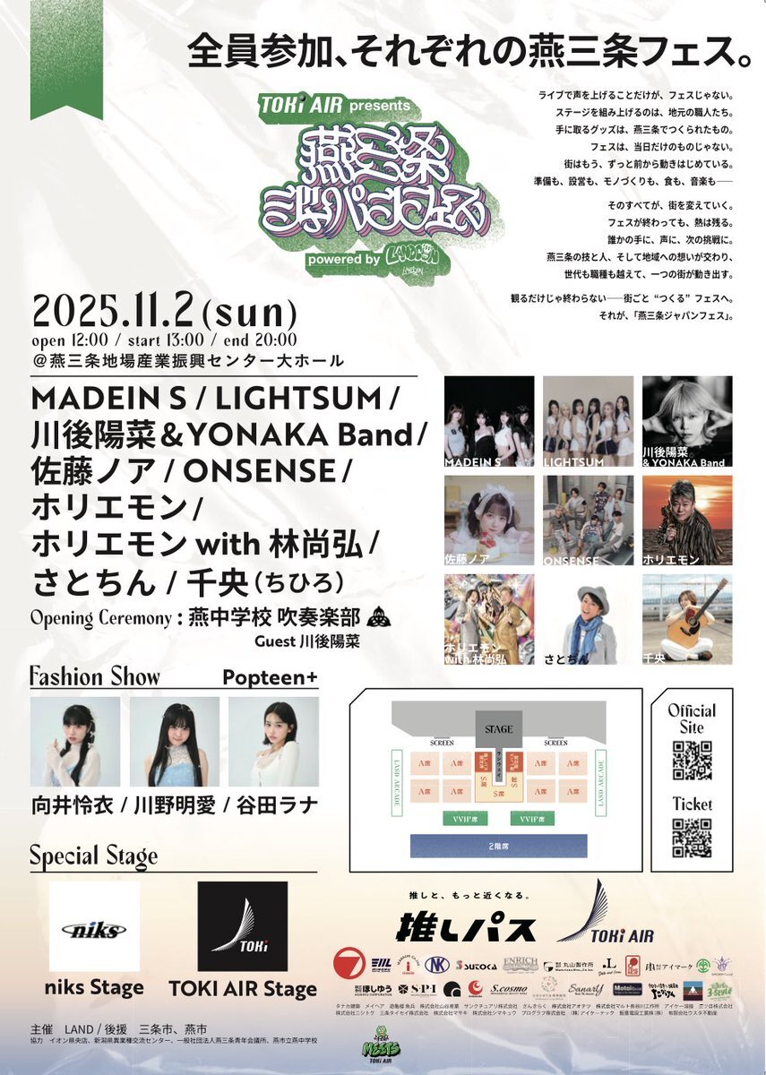 いよいよ今週末!! TOKI AIR presents 燕三条ジャパンフェス powered by LANDCON 全アーティストが発表となりました🙌 関西地区、中部地区よりトキエアによる無料航空券が付いたスペシャルパッケージも販売しておりますので、是非この機会に燕三条へお越し下さい🛫 landcon.jp