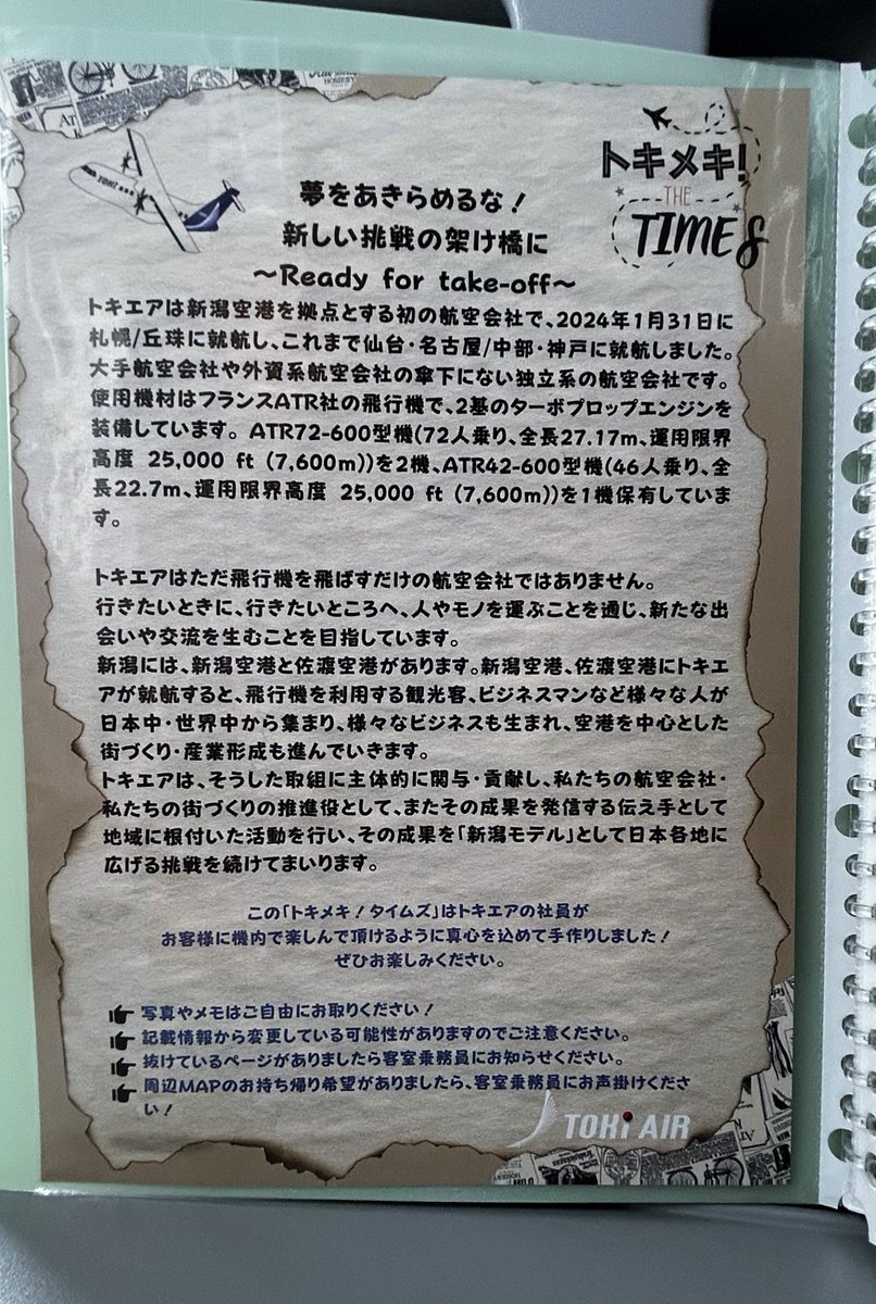 先日の弾丸丘珠旅から… トキエア機窓 岐阜基地上空を通過😍 機内誌の「手作り感」にとても懐かしさと温かみを…😊 時間をかけてじっくり読んでしまいました 欲しかった「長岡花火柄」のフライトタグを機内販売でGET✨ メッセージカードとシールも頂きました🪽 #トキエア pic.x.com/dKKbK7QTdV