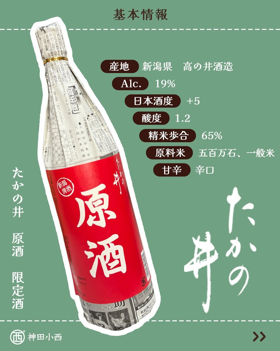 【🍶新商品・入荷🍶】 ● #たかの井 原酒 限定酒(1.8L/2,970円) アルコール度数「19度」! 濃醇辛口の味わいで、飲み応え抜群◎。 ぬる燗からオンザロックまで楽しめる原酒です😊 #高の井酒造 #たまごかけごはんの日 #トマトサワーの日 pic.x.com/ft9fJNhiIq
