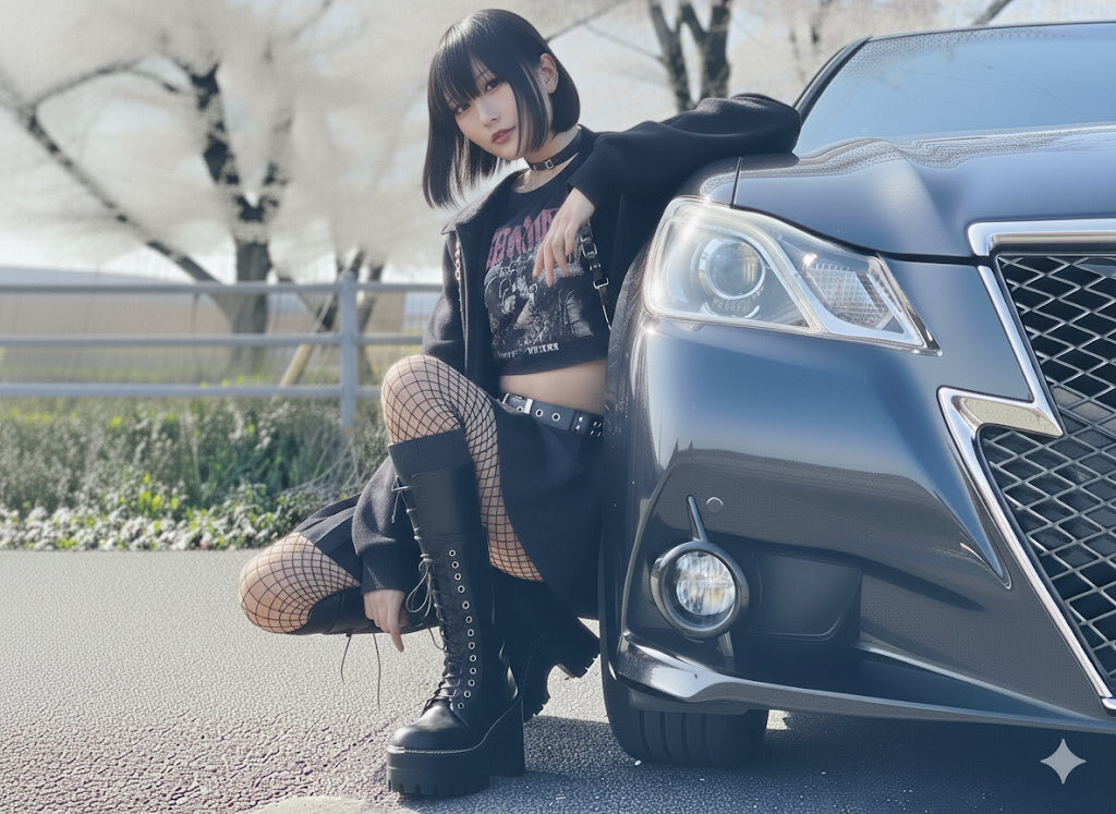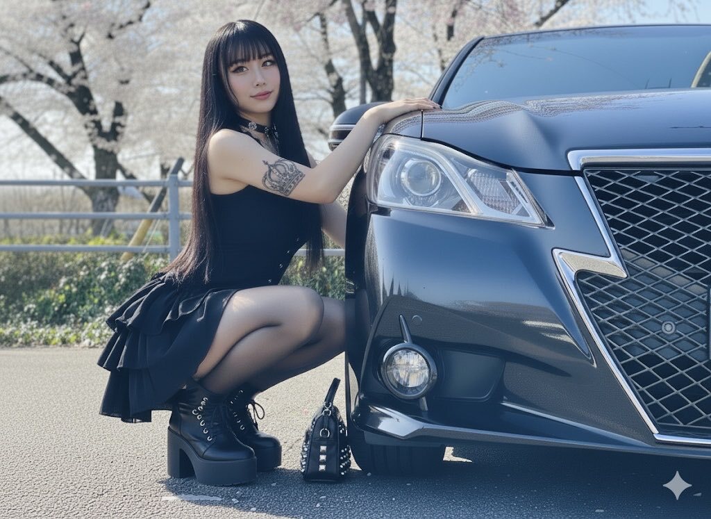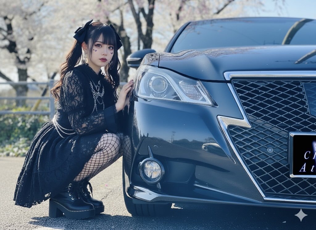 結局クラウンが黒いから、地雷系が似合うと思いました。 ほぼほぼ服装以外は個人的な理想だけど笑 そして秋なのに桜という、、 #トヨタ乗りと繋がろう2025秋 #クラウン乗りと繋がろう2025秋 #自分に刺さればそれで良い #Gemini