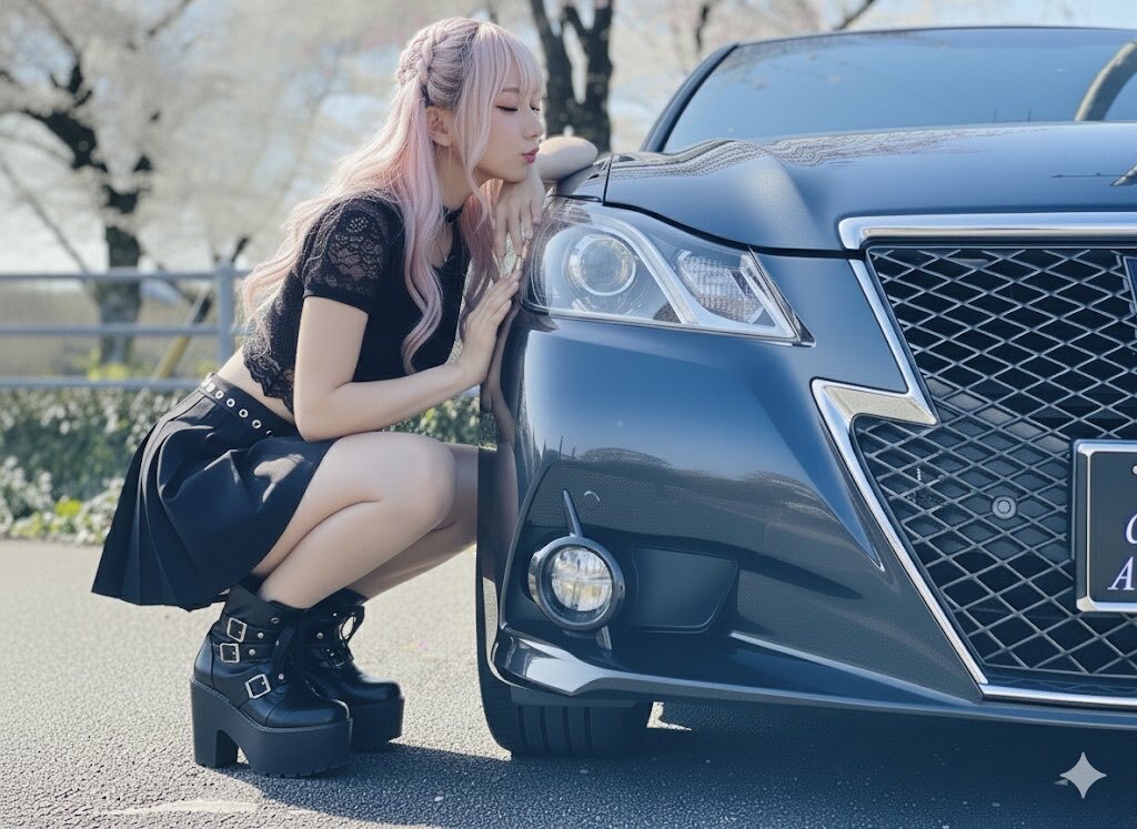 結局クラウンが黒いから、地雷系が似合うと思いました。 ほぼほぼ服装以外は個人的な理想だけど笑 そして秋なのに桜という、、 #トヨタ乗りと繋がろう2025秋 #クラウン乗りと繋がろう2025秋 #自分に刺さればそれで良い #Gemini pic.x.com/cQX022iNbx