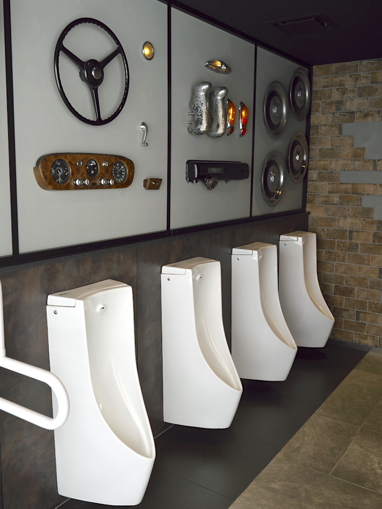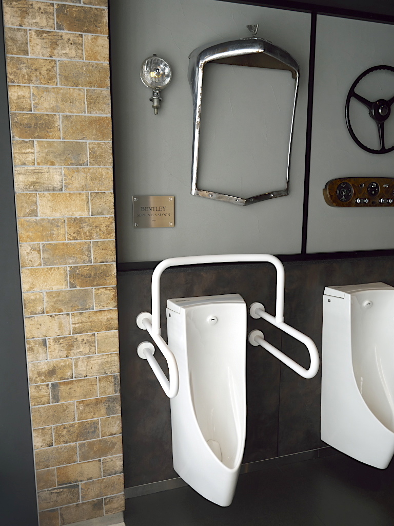 清潔なトイレに飾られているベントレーのパーツ...。合わせて「ベンキキレイ」(・ω・).。oO(ベンキレーにすると検便みたいなので止め...。「便の容器(ベントレイ)」は有りや無しや...。 #トヨタ博物館 #文化館 pic.x.com/45iv7iSRmw
