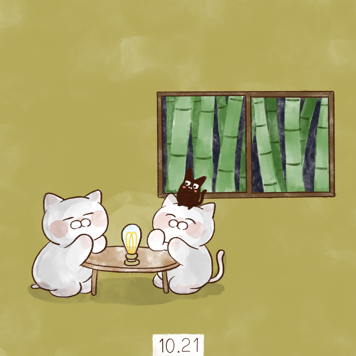 10月21日【あかりの日】 1879年10月21日にトーマス・エジソンが京都産の竹の繊維を炭化させたフィラメントを用いて白熱電球を完成させたことにちなんで1981年に制定されました。あかりのありがたみを認識する日。
