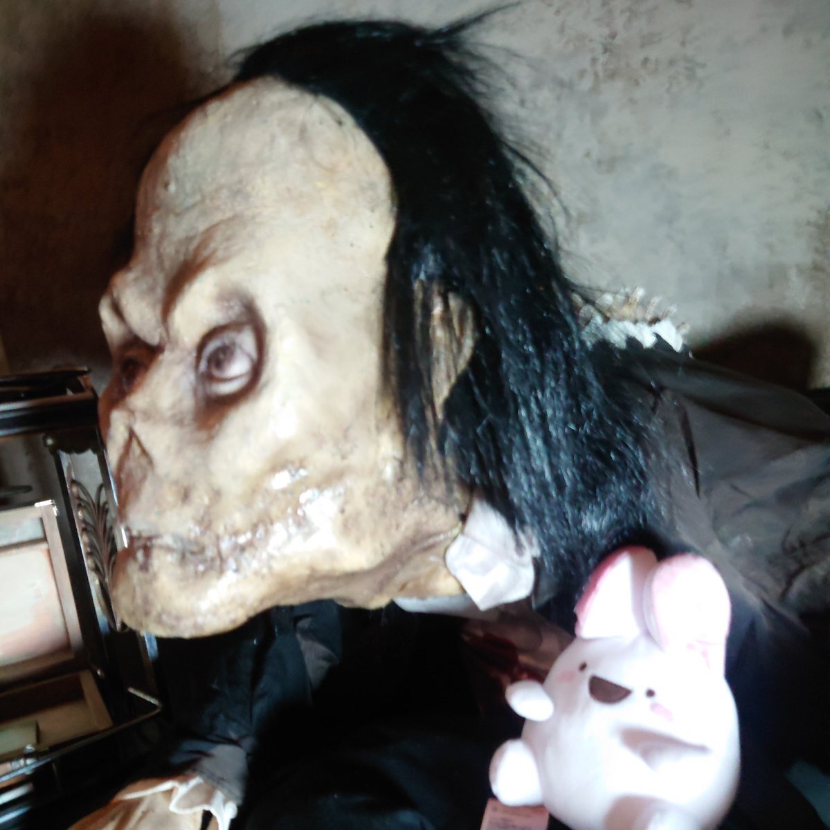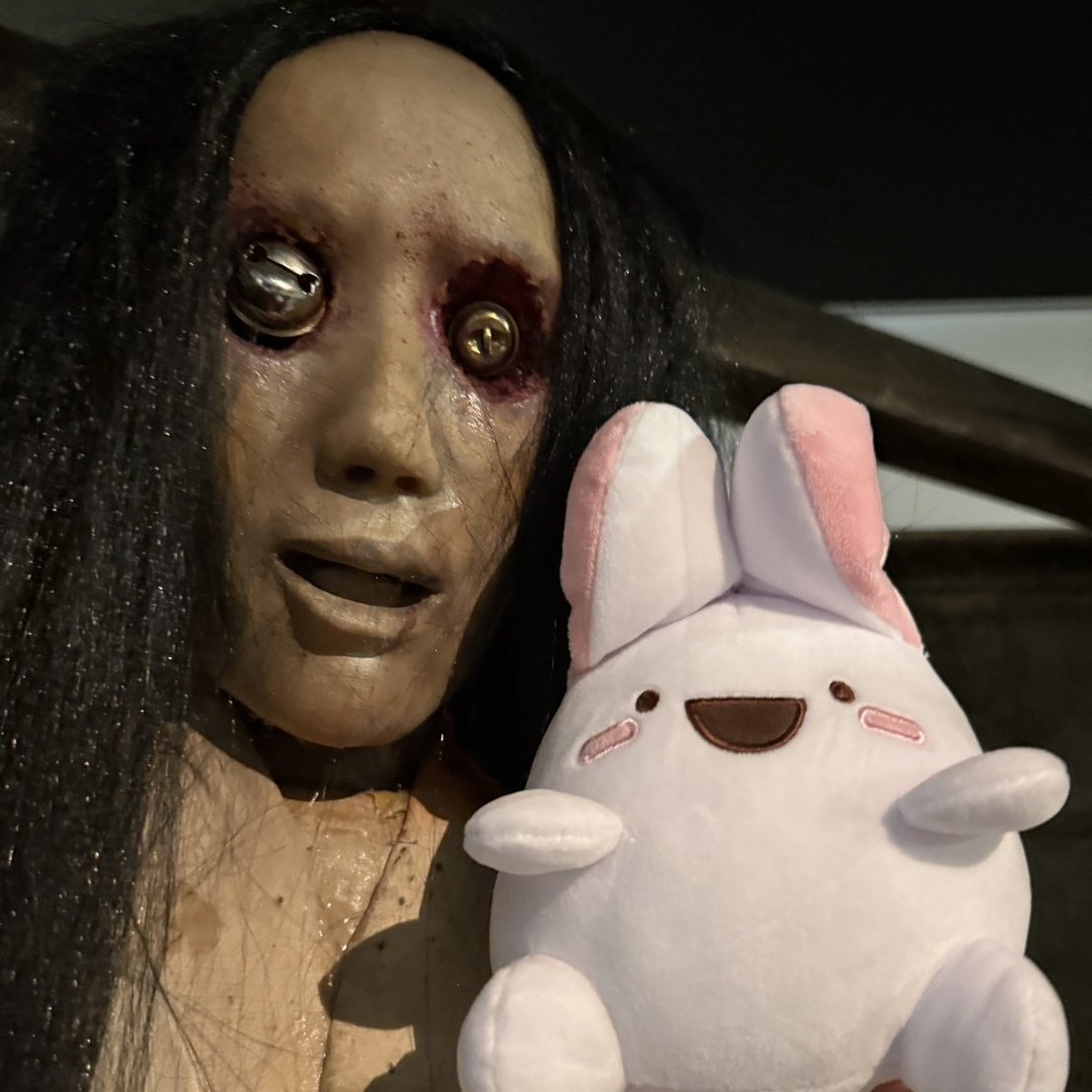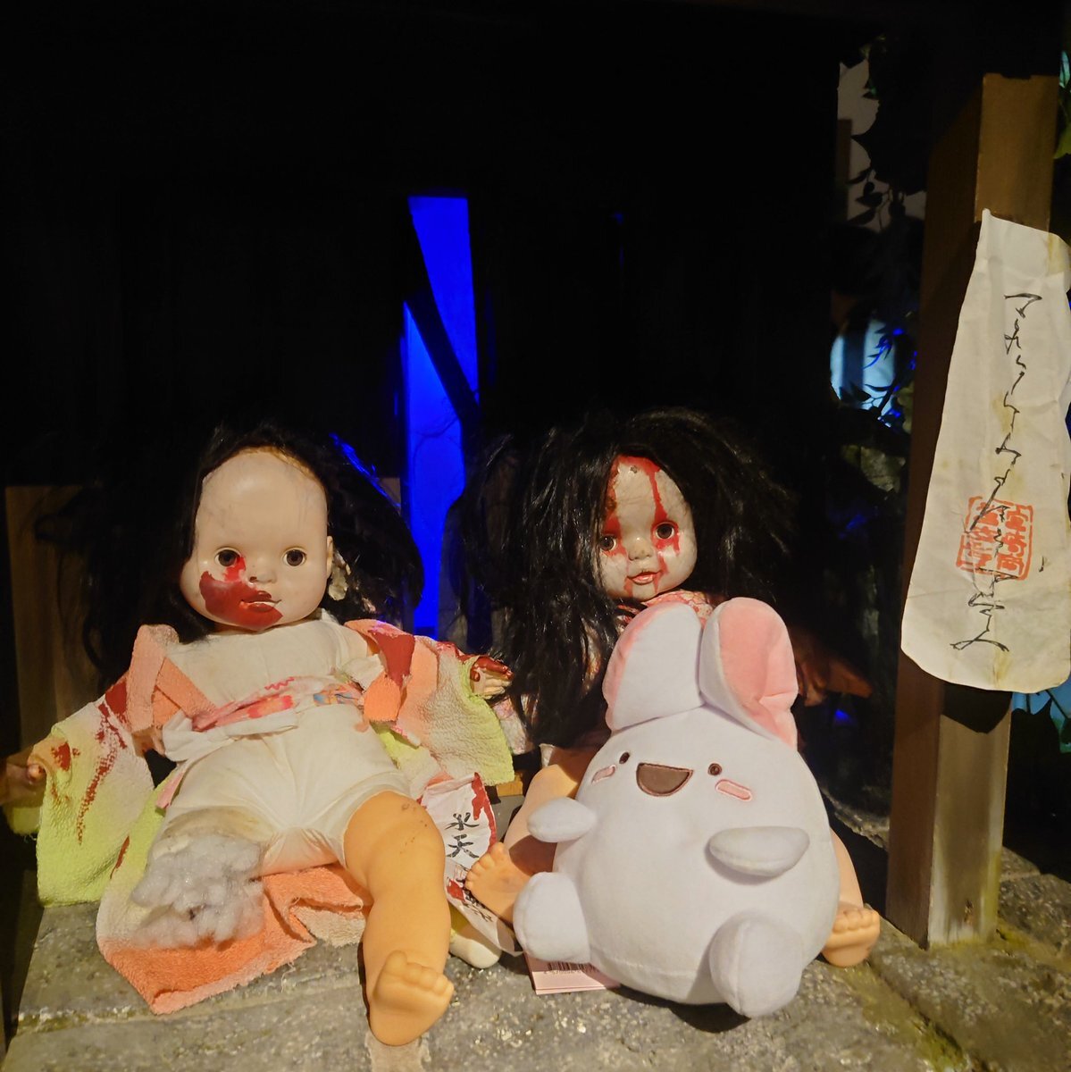 #ホラーにふれる展 #ドコドコうさぎと一緒 新潟でやってたときから気になってた 「ホラーにふれる展」やっと行けたー! 夕方なら人少ないかなーってナメてたら整理券制で配布終了でフリー入場までソラマチ周辺ぶらぶらしてたけど その分閉場ギリギリだと人少ないからお写真いっぱい撮れて楽しかった! pic.x.com/DQNt63QxUt