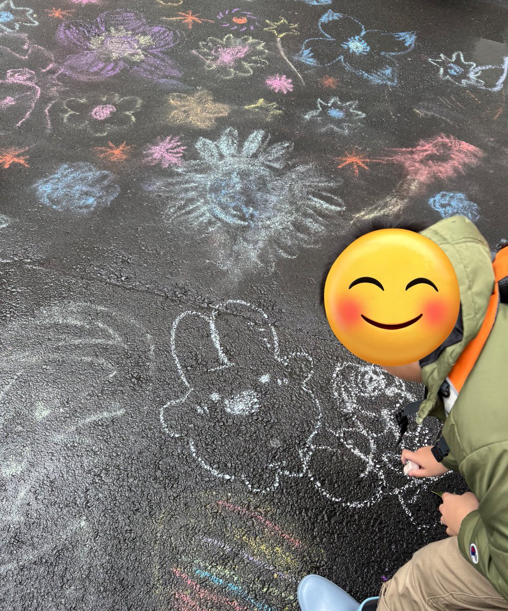 通りかかった地域のアートイベント 道路にチョークで落書きしていいよ!というのがあったから子供と参加 ドコドコうさぎを描いてみた 🐰<アメフッターラ キエチャーウ‼︎☂️ #ドコドコうさぎと一緒 #asahafanart pic.x.com/J3lrdzfS1l