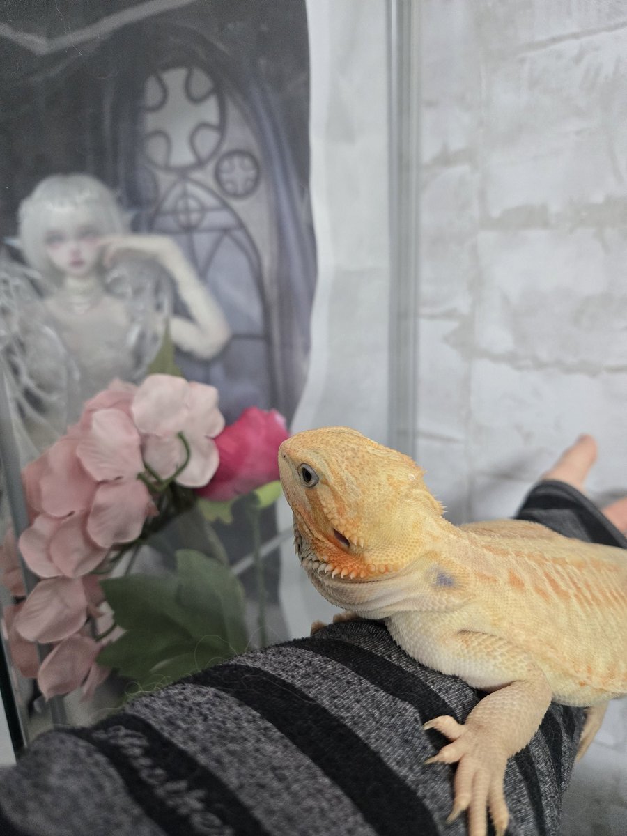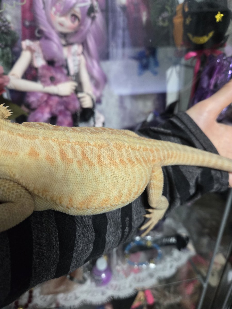 今日も🦗15匹食した後「遊んで出して~!」モード全開のマロ🌰ちゃま😄 今日もペッタリ抱き着いてかわよ~🥰 腰の辺りの酷かった盛り上がり⛰️ もうあまり目立たないでしょ?👀チラッ #フトアゴヒゲトカゲ #トランス #爬虫類好きさんと繋がりたい #ドール好きさんと繋がりたい pic.x.com/1ermLciE35