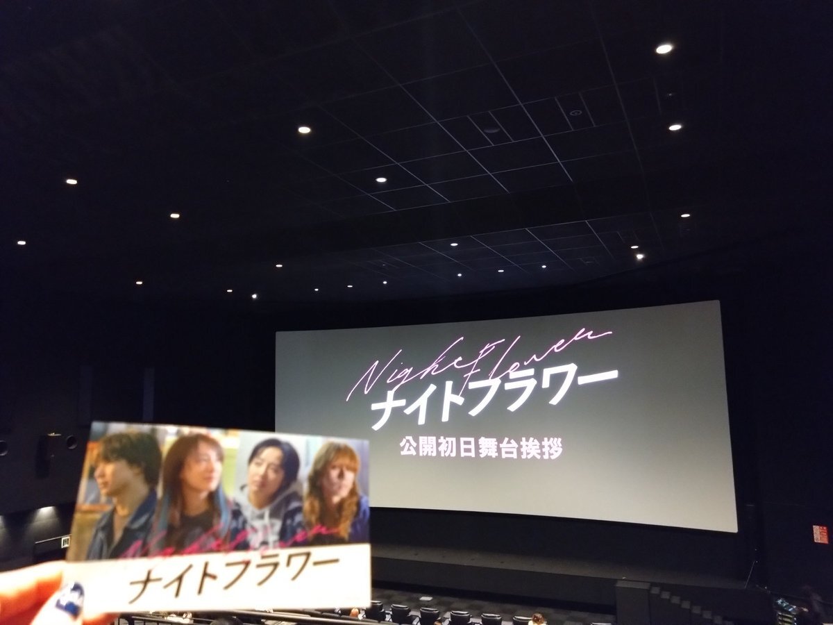 『ナイトフラワー』2回目も初日舞台挨拶ライブビューイングで。 1回目見た時は正直何度も見るのは重いかなと思ったけど、2回目にして芸術性の高さに目がいくようになり、まだ見足りない!という気持ちになった。(既に明日の座席予約済んでたけど😎) #ナイトフラワー見たよ pic.x.com/lcPJdC2qhX
