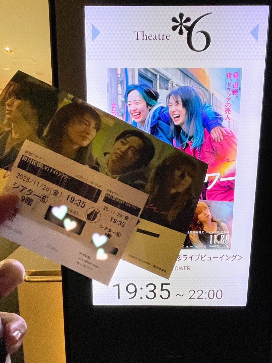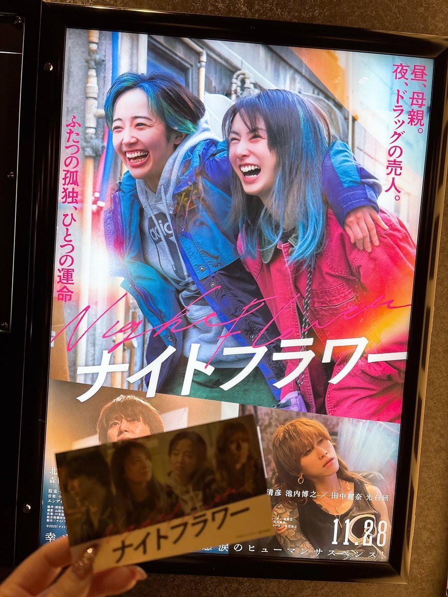 ナイトフラワー初日舞台挨拶生配信見てきた🎬️全てのキャストさんの演技が素晴らしかった😭ずっと気持ちはモヤモヤするし…そして辛いし…でも確認したいことが出来たのでまた行かなくちゃだな🎥シアター着いたらめめも居たよ!今年に引き続き来年も映画館通いが続くな😆 #ナイトフラワー見たよ pic.x.com/ZZRvBhX891