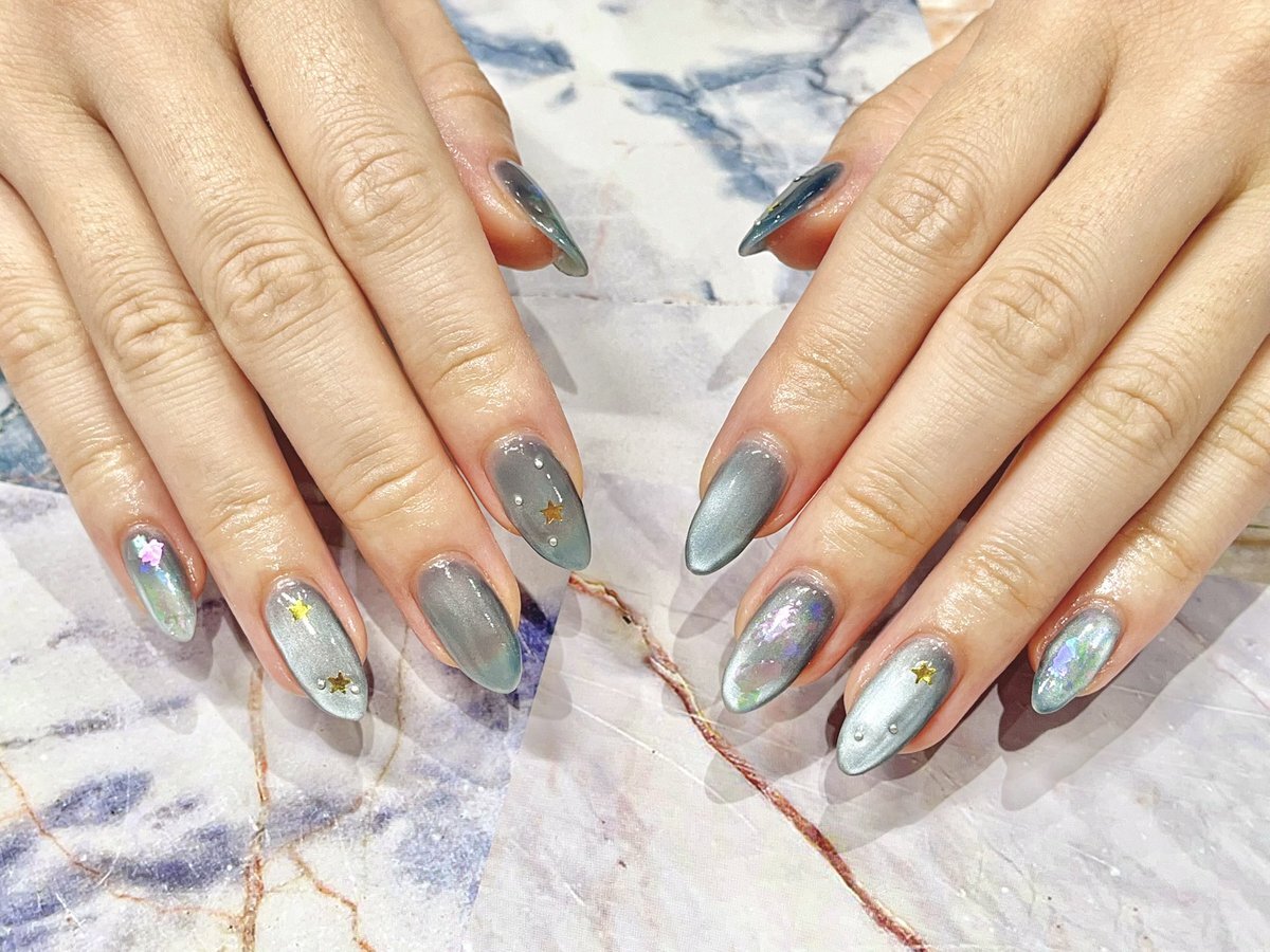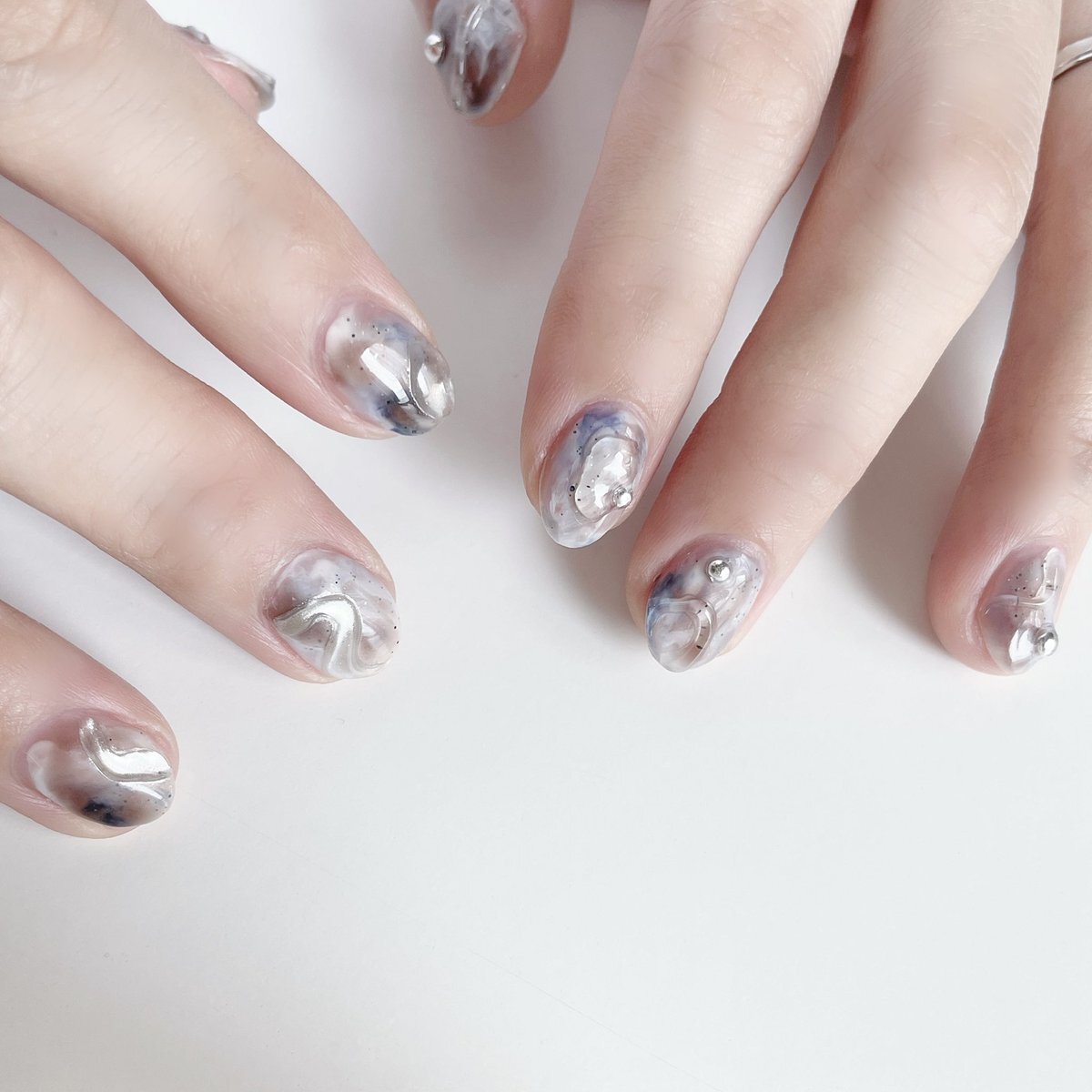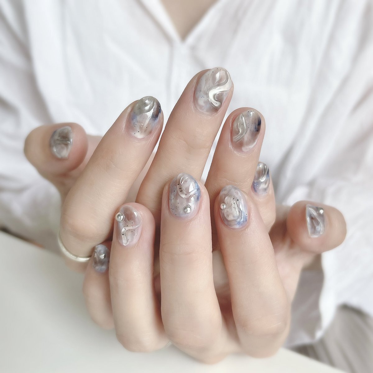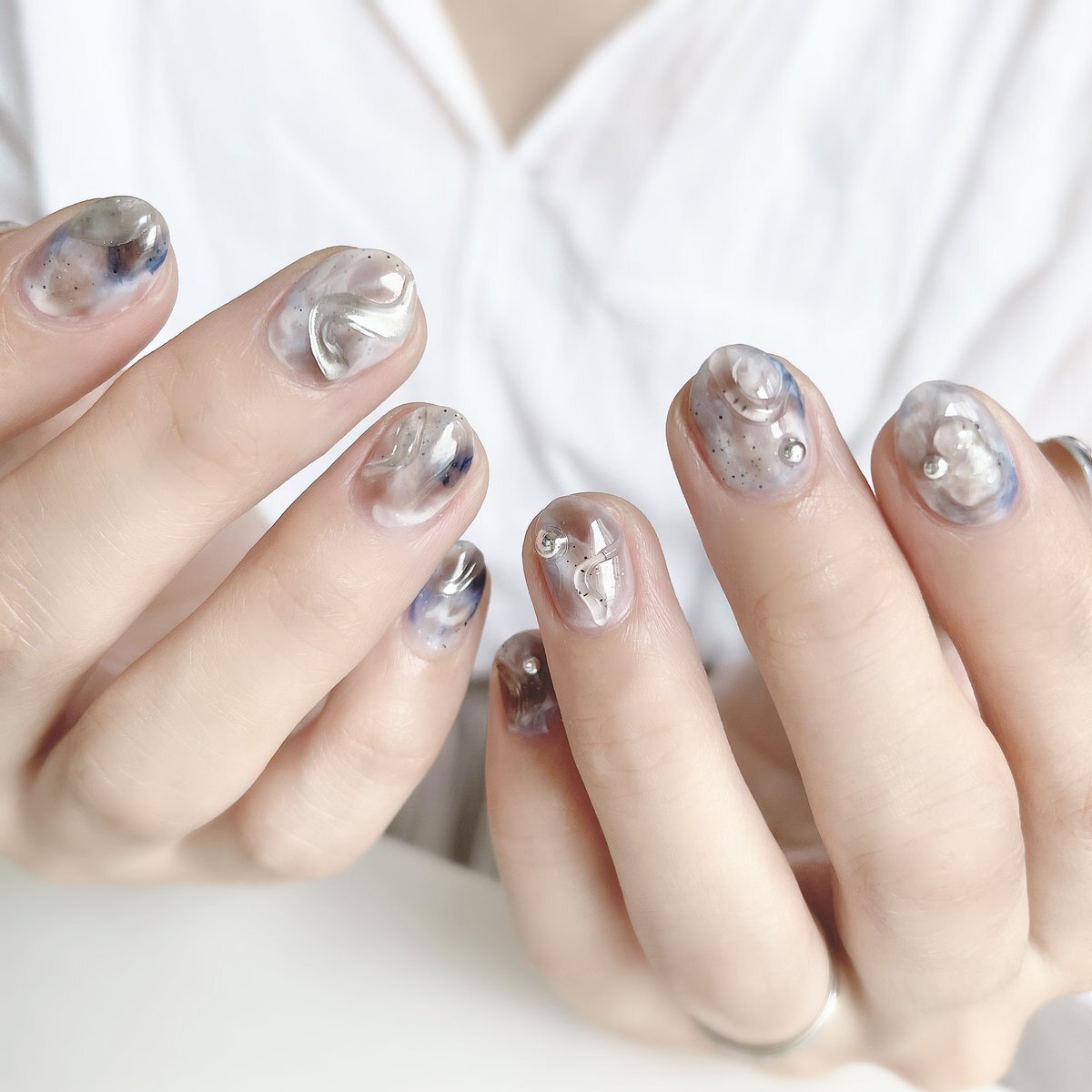 夏色ニュアンスネイル💅 ブルーとクリアとシルバーの 組み合わせが可愛いです(^^) #夏ネイル #ニュアンスネイル #ブルー #シルバー #ネイル好きさんと繋がりたい #お洒落さんと繋がりたい pic.twitter.com/ts5y80UhrI