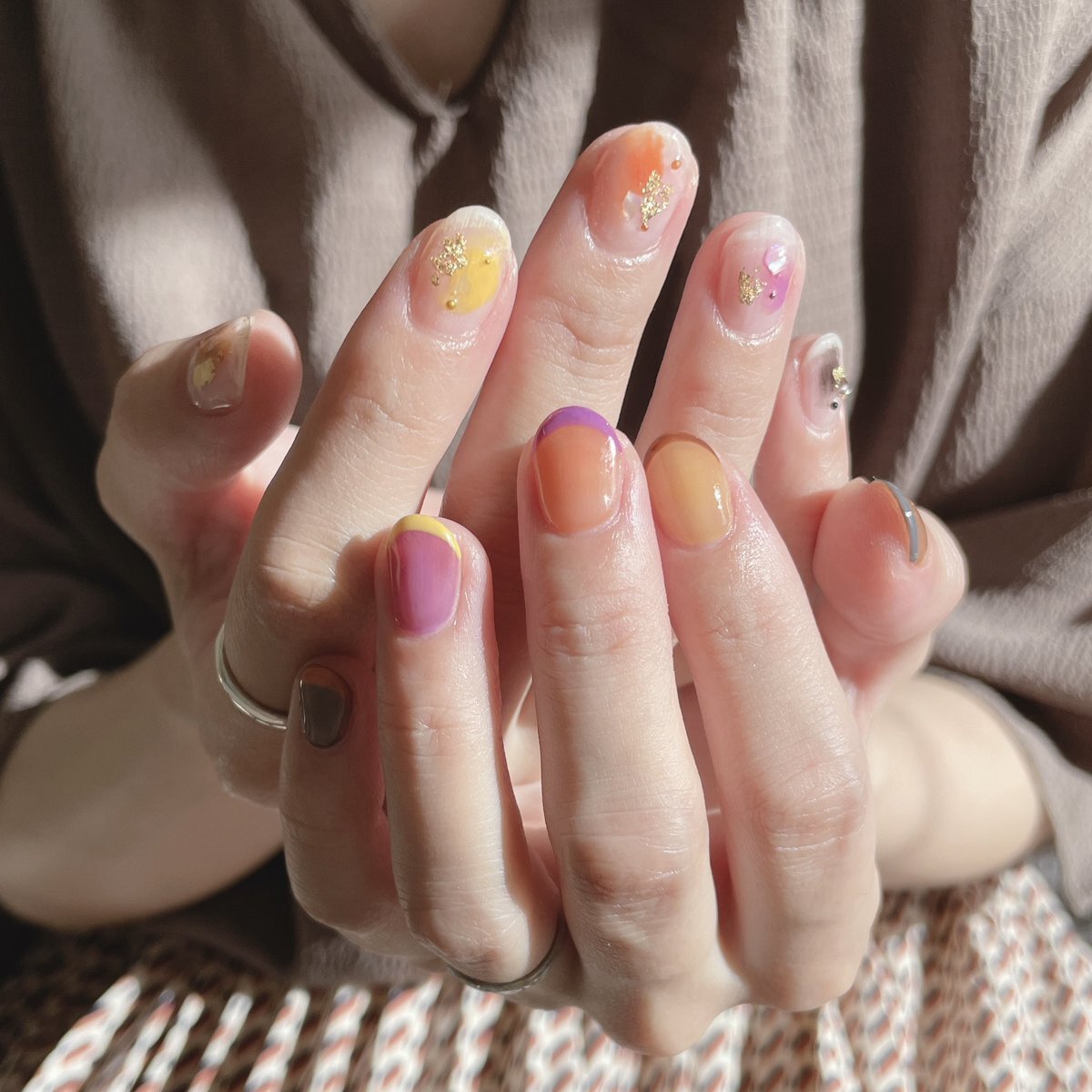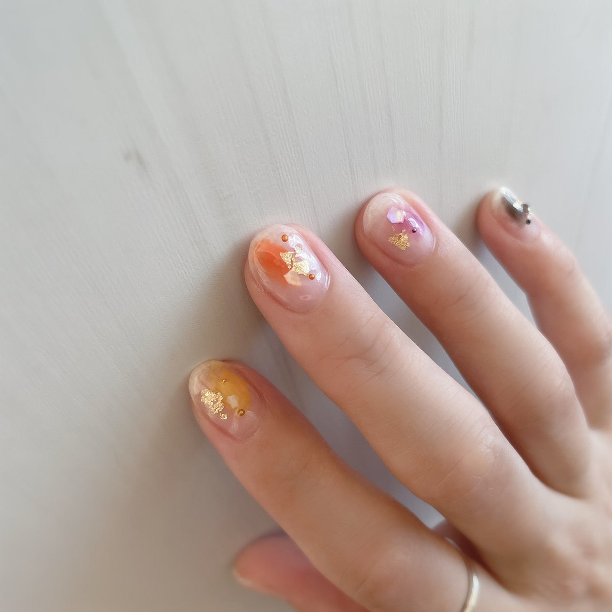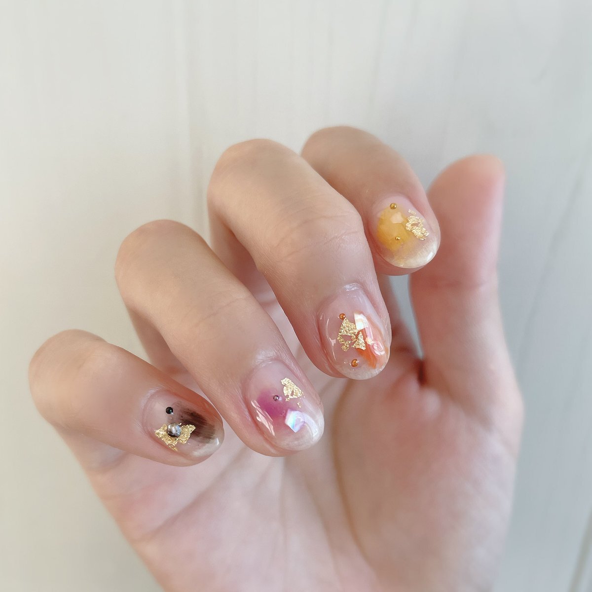🎃👻🍭 右手は塗りかけネイルに 金箔と各カラーのシェルやブリオンを 散りばめています💅🎨 カラフルでショートネイルでも 可愛いです(^^) #ハロウィンネイル #塗りかけネイル #ネイル好きさんと繋がりたい #お洒落さんと繋がりたい pic.twitter.com/pXHHrmybxu