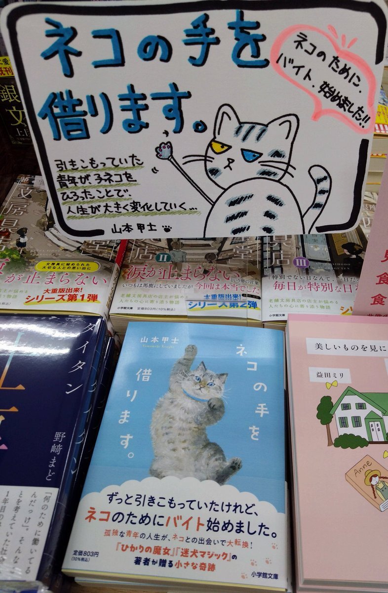 【文庫】引きこもっていた青年が、子ネコを拾ったことで、人生が大きく変わっていく……ネコのためにバイトも始めました!! #山本甲士 さんの『ネコの手を借ります。』いかがでしょうか(●^o^●) #小学館文庫 #ネコの手を借ります pic.x.com/oJxr7pIUT2