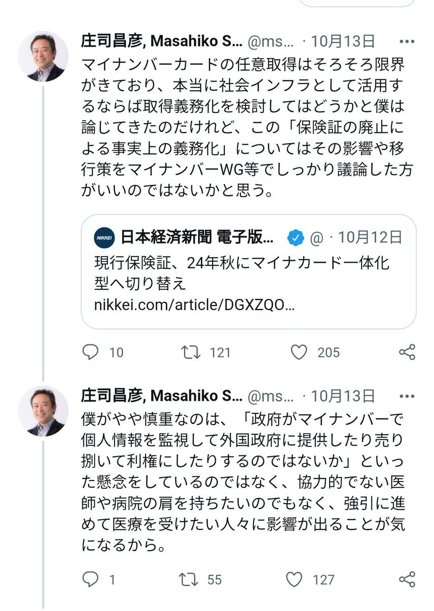 返信先:@mshouji#ネトウヨの支離滅裂な思考発言↓自公政権による汚職の温床であり個人情報流出が続出するマイナンバーの義務化を提言しておきながら批判コメントが増えたら「僕は慎重」と逃げ道を作る二枚舌。保身に走るなど信仰心が足りん!と怒られるぞ。#自民党って統一教会だったんだな x.com/JTMDPhD1/statu… pic.x.com/P2Stob9v6o