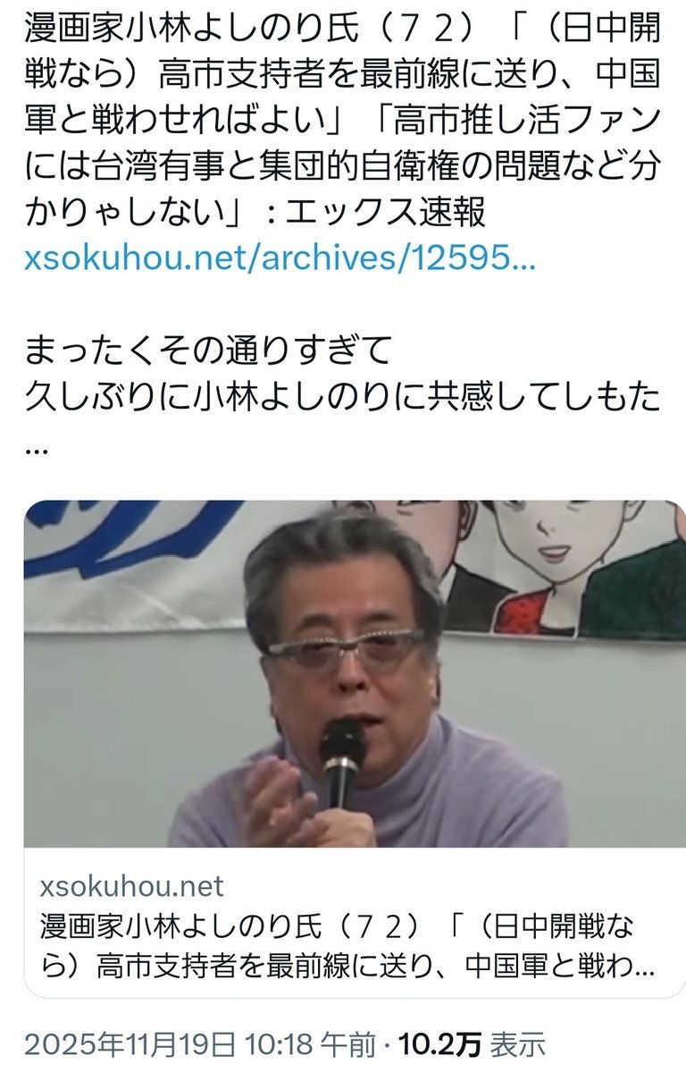 戦争になったらそれどころじゃないって分かりませんか? 分かんないの?(笑) 台湾有事なんかに関わらなかったら保護もされるだろうに、ネトウヨやエセ保守のせいで日本は散々だ… #ネトウヨは日本の事なんてこれっぽっちも考えていません #ネトウヨは反日 x.com/hayashirice202…