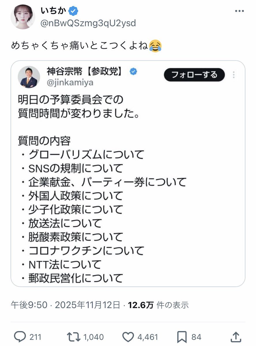 責任取るのは高市早苗なんだけど。何で立憲のせいになるのかな?#エクストリーム政権擁護 するにはあまりにも無理がありすぎ😂😂😂😂😂😂😂😂😂😂😂 #アベウヨって恥ずかしい #ネトウヨあほ列伝 #日本の恥 #存立危機事態 #ネトウヨやらかし大賞2025 x.com/UoXjppRMEeRNv4…