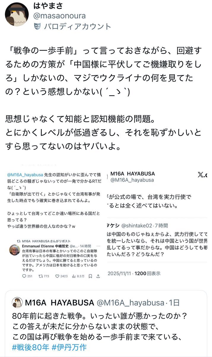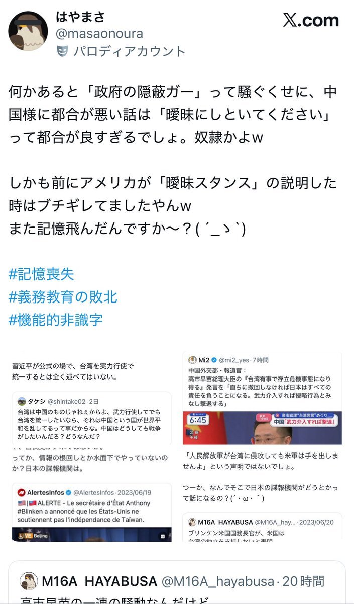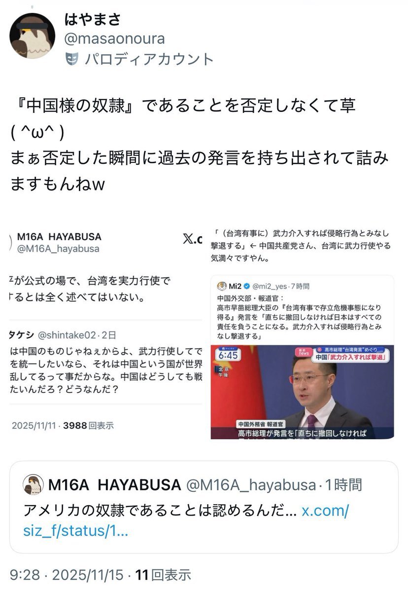 ネトウヨ アメリカ🇺🇸からのお話 平和🕊️令和 #台湾問題 #台湾有事 #ネトウヨやらかし大賞2025 #ネトウヨ #戦争やめろ #高市やめろ x.com/sakemotomasao/…