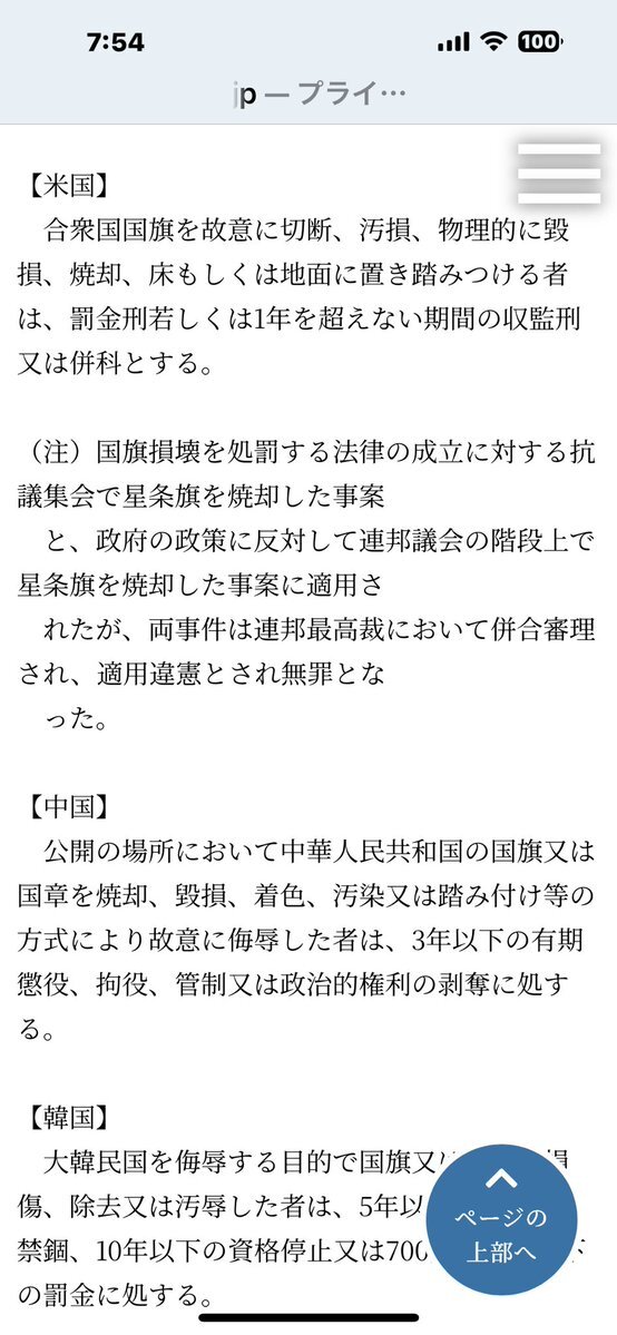 高市総理のホームページから引用した私の言葉が紀藤弁護士から間違いだと指摘され、私が嘘つき、無知であることが広がっております。アメリカの国旗に関しては原則罰則があるが、ある出来事に対して表現の自由の元、最高裁で適用違憲とされたまで。つまり原則罰則はある事は決して間違いではないはず。