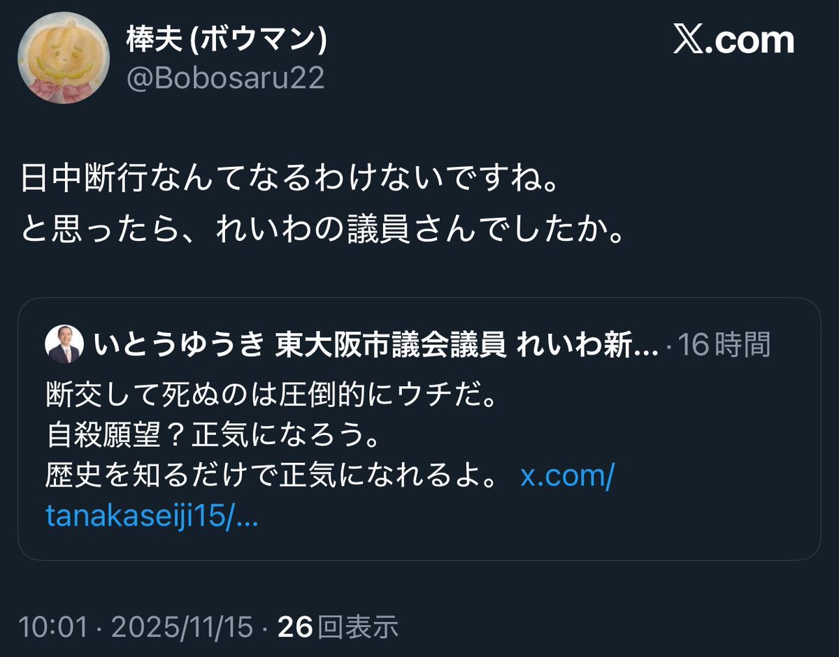 >このことはわかりますかね? それって君に向けられた言葉だと思うんだけど🤣🤣🤣🤣🤣🤣🤣🤣🤣🤣🤣 #アベウヨって恥ずかしい #ネトウヨあほ列伝 #ネトウヨやらかし大賞2025 x.com/ryohei_123/sta…
