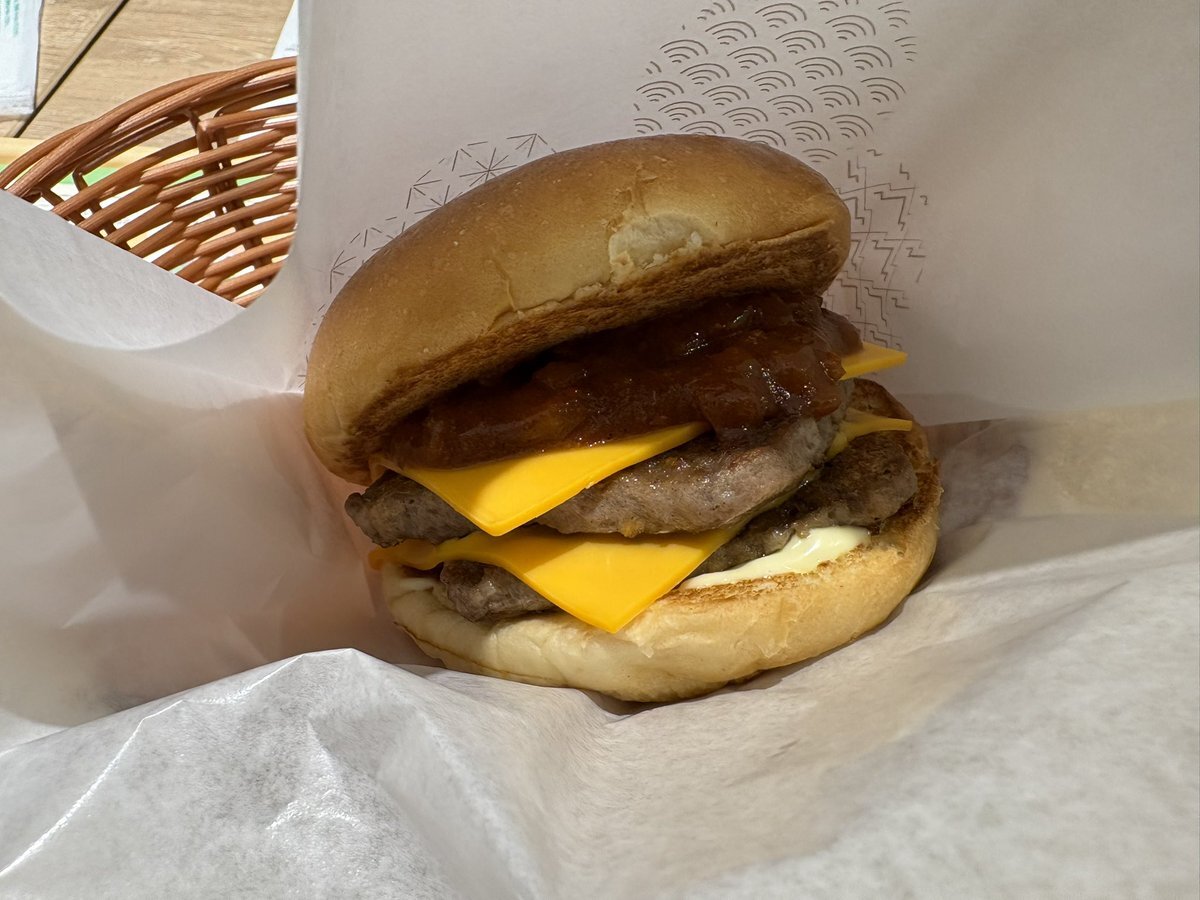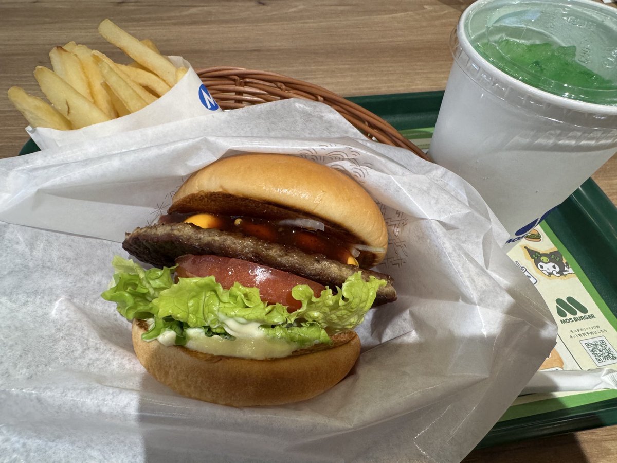 ニアジョイ有明の帰りに軽く夜飯で行きました! 黒毛和牛のダブルチーズバーガー美味すぎてキャンペーン期間中毎回これで良いかもって解が出た #ノイミーの今夜はもぐもぐ肉モス pic.x.com/weutjxnYlR