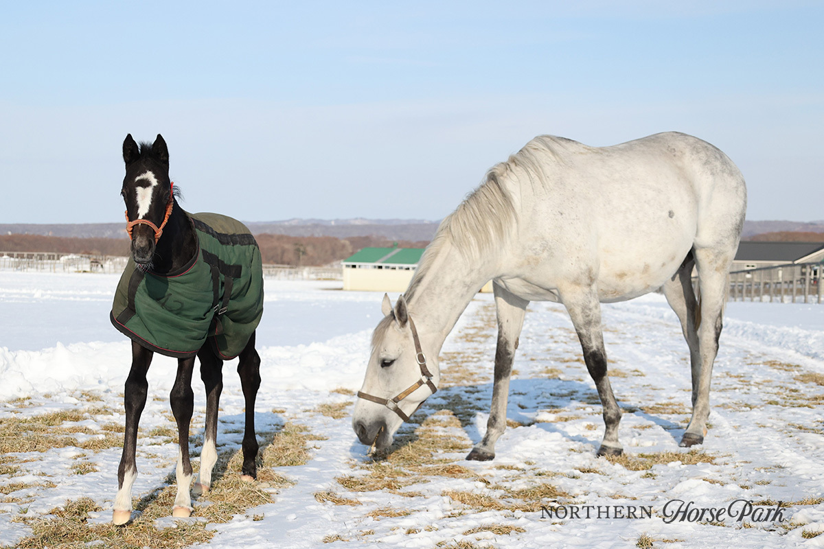 昨年末から生まれ故郷のノーザンファームで暮らしているクロノジェネシス。北海道に来てまだ一ヶ月足らずですが、寒さや雪にもすっかり慣れたようです。現在は先輩ママたちとも仲良く交流しながら母になる準備を進めています。 #ノーザンファームからのお便り pic.x.com/cxWVfQIEvv